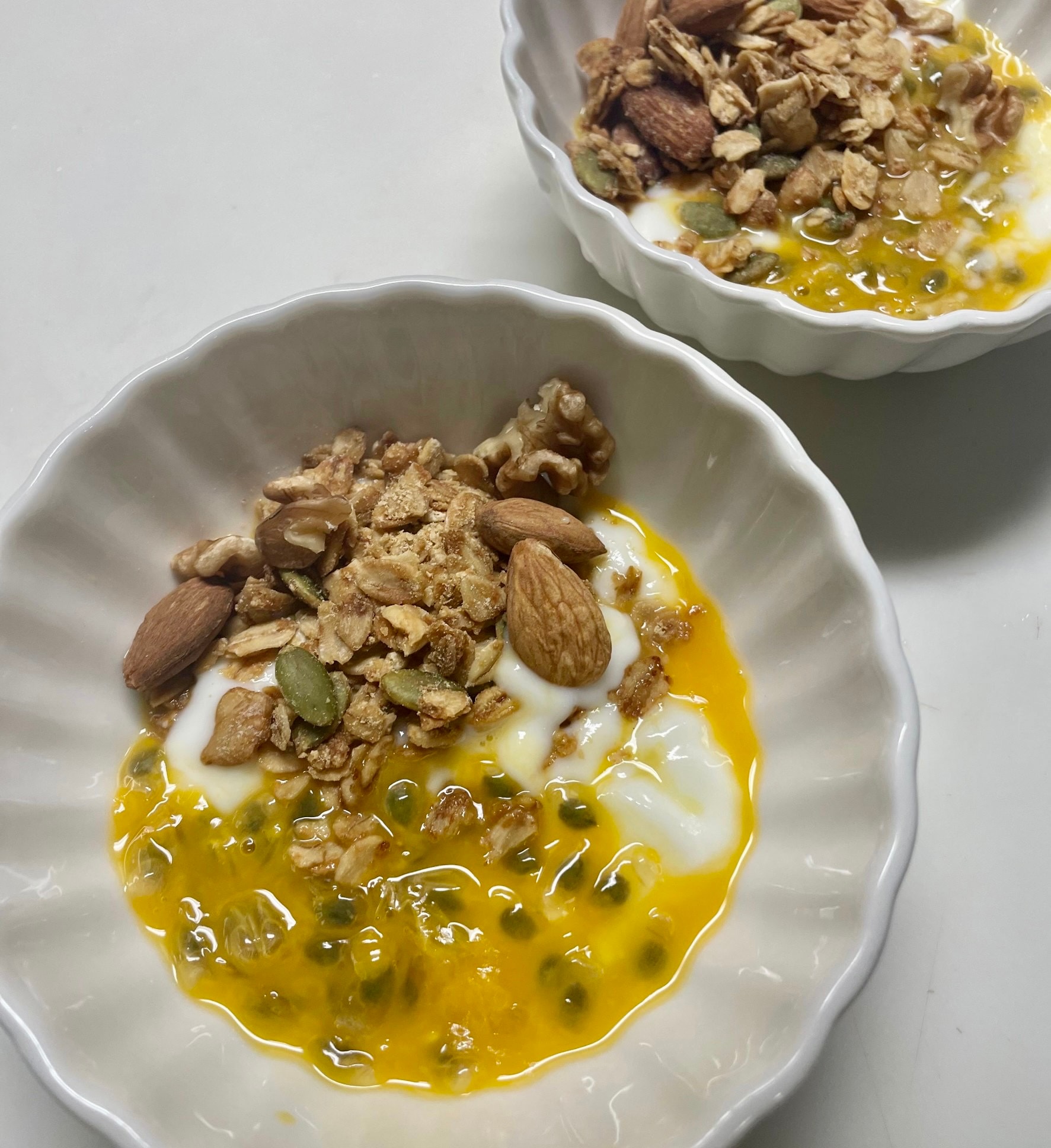 ②ヨーグルトに、パッションフルーツ、Lafraのグラノーラをかけて朝食に