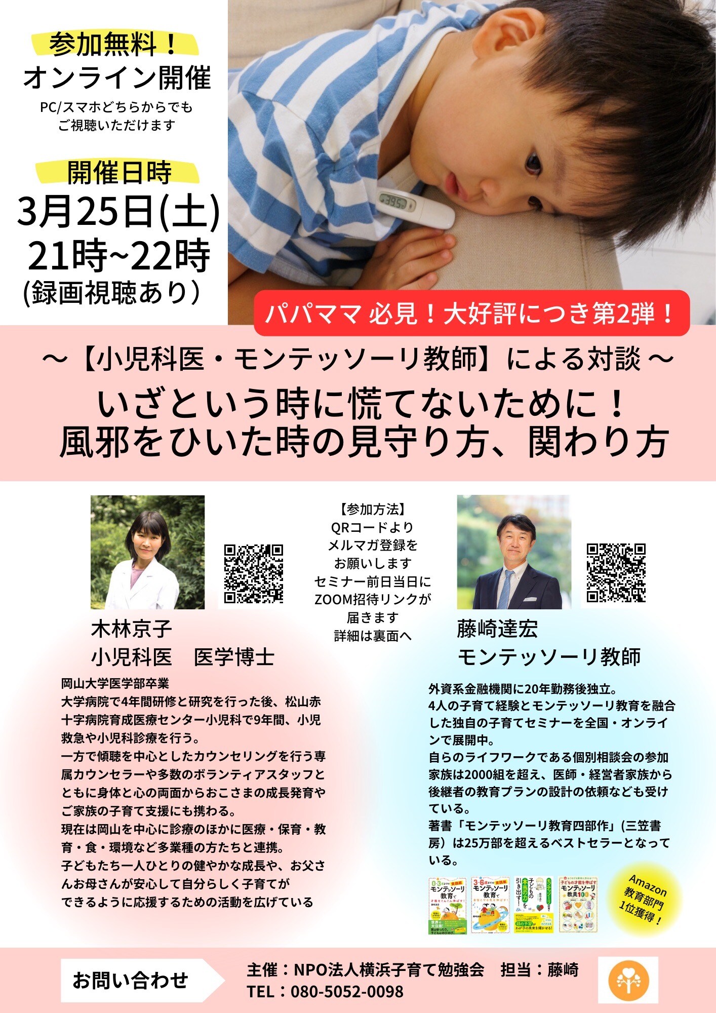 今回は、子供の個性とは?性格とは?その子にあったお声掛けとは?モンテッソーリ教育の環境論を含めて、楽しく有意義な時間にいたします。