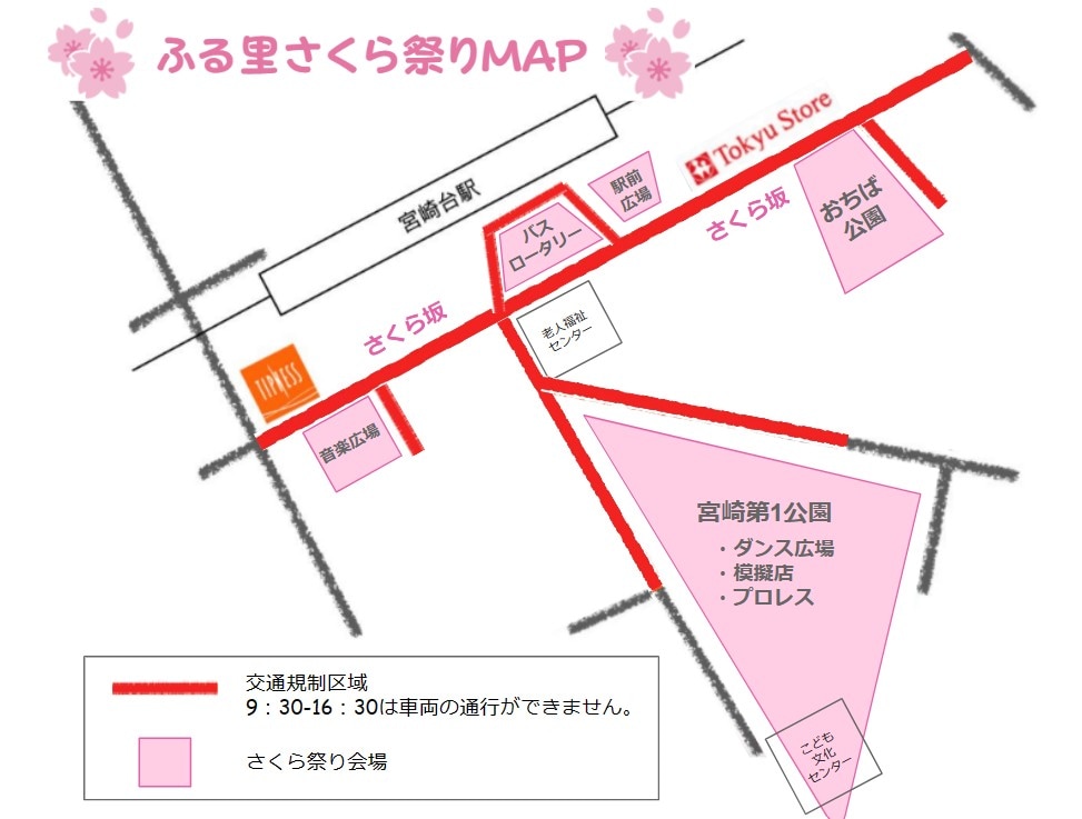 場所:宮崎台駅周辺、宮崎おちば公園、宮崎第1公園、さくら坂(歩行者天国)