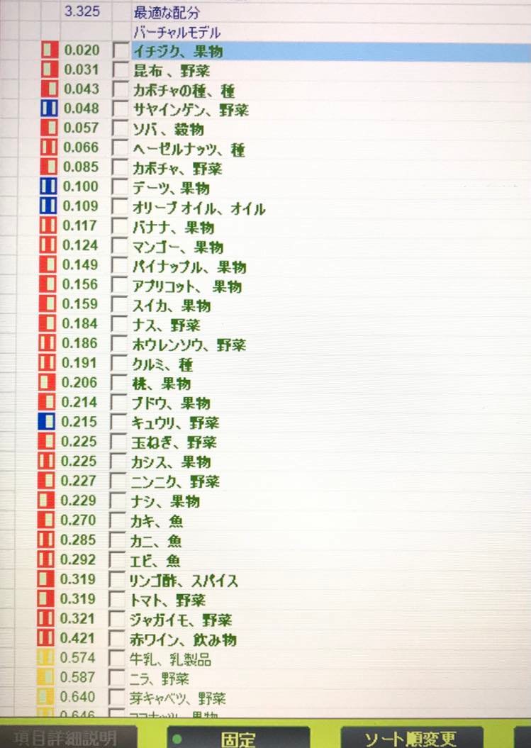 ※上記のお客様の物では無いですが、このようにランキング形式でズラッと周波数の合う食材等を見ることができます。