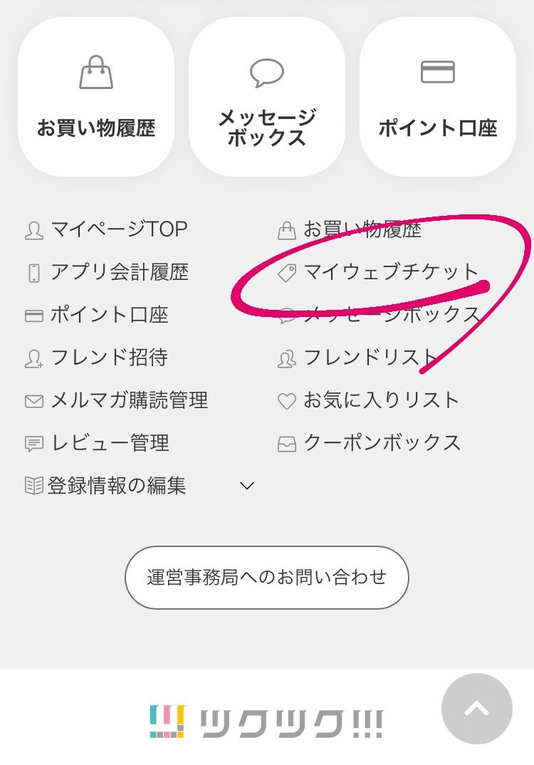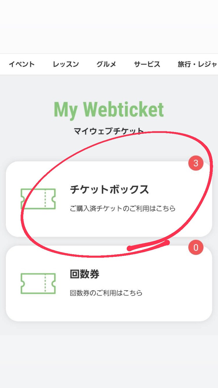 【マイウェブチケット】のページの【チケットボックス】を選択してください