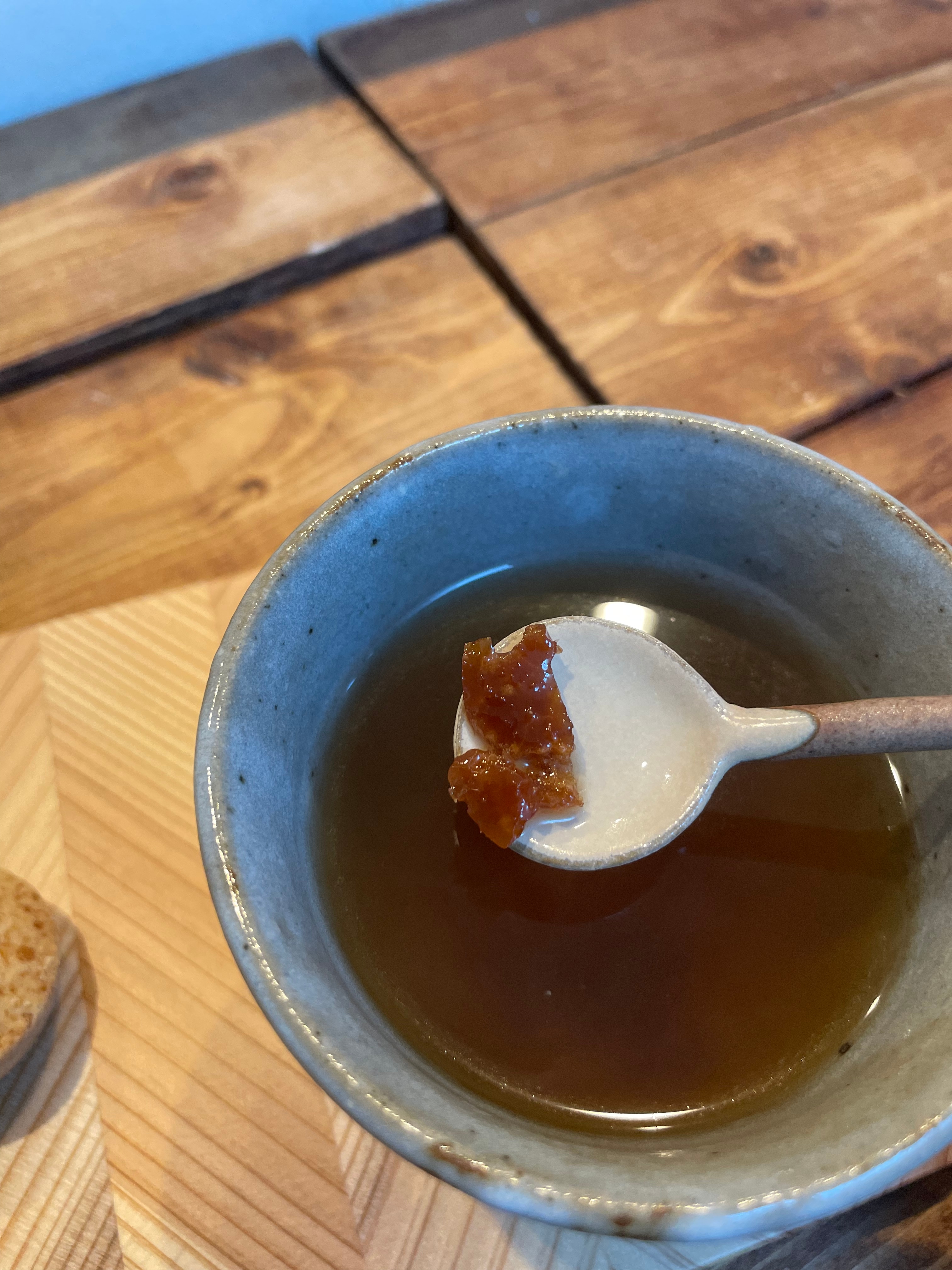 おきなわ晴家さんの生姜黒糖をお湯で溶かしただけで、非常に美味しい黒糖生姜湯が完成した訳です。