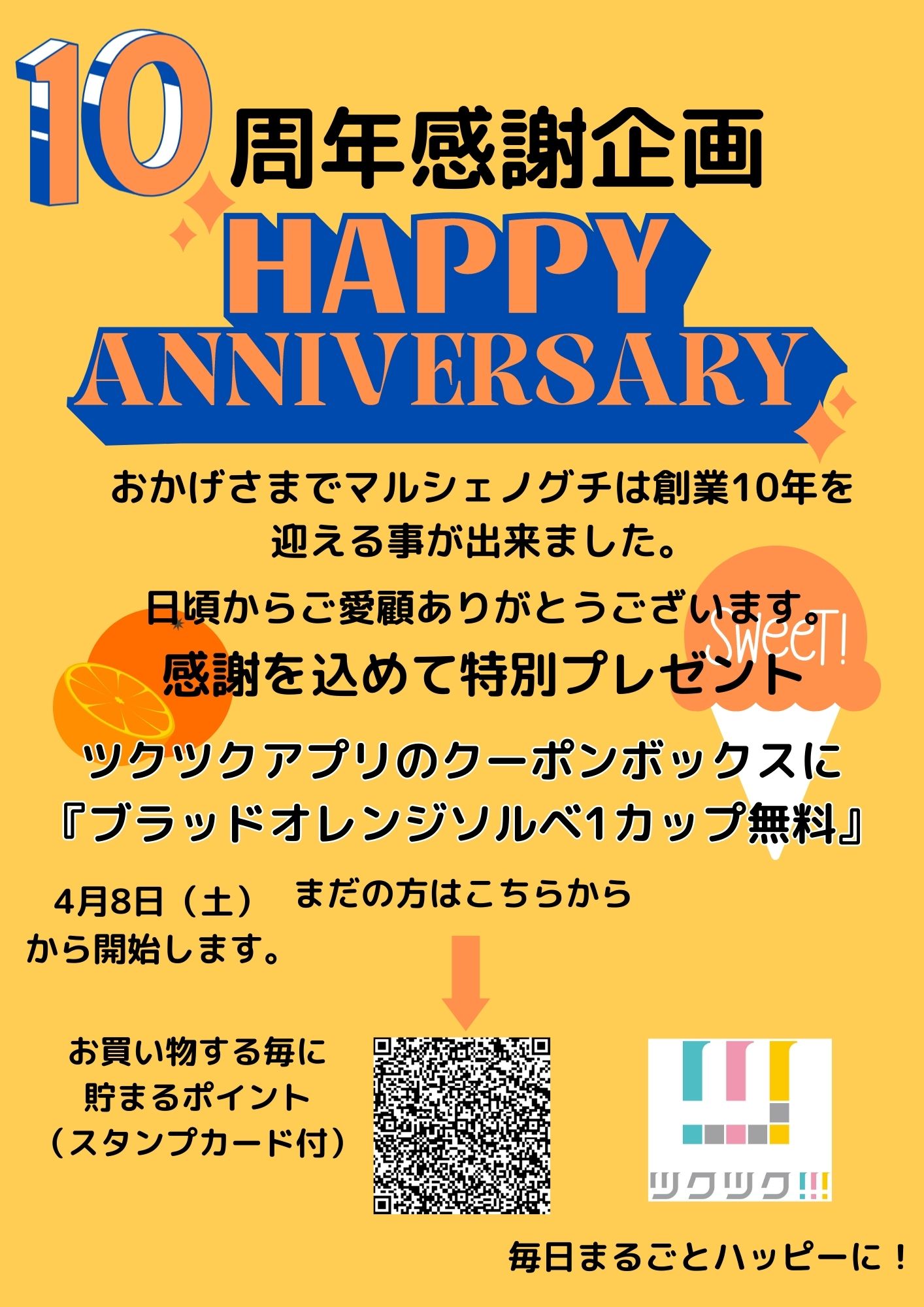 おかげさまで、マルシェノグチは4月8日を持ちまして創業10年を迎えます。
