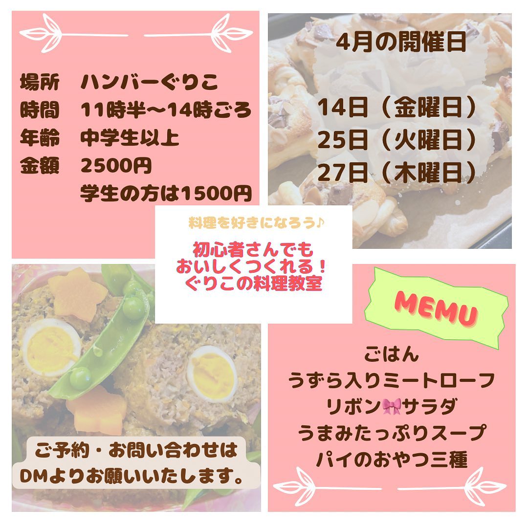 営業日+料理教室に関しては画像をご確認下さい😄🙏
