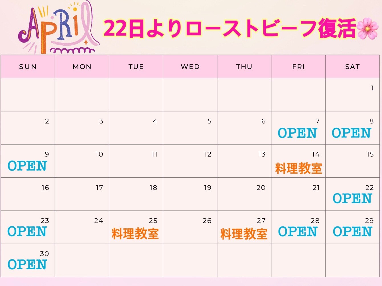 下旬からはローストビーフの提供も再開できますので、そちらもお楽しみにしていただけますと幸いです😄🙏