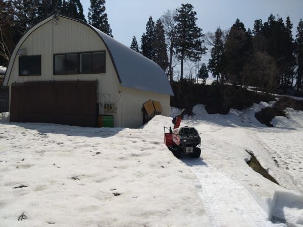 私は3mの雪に埋もれる作業場内に、もみ殻付きで保存をして春を待ちます。
