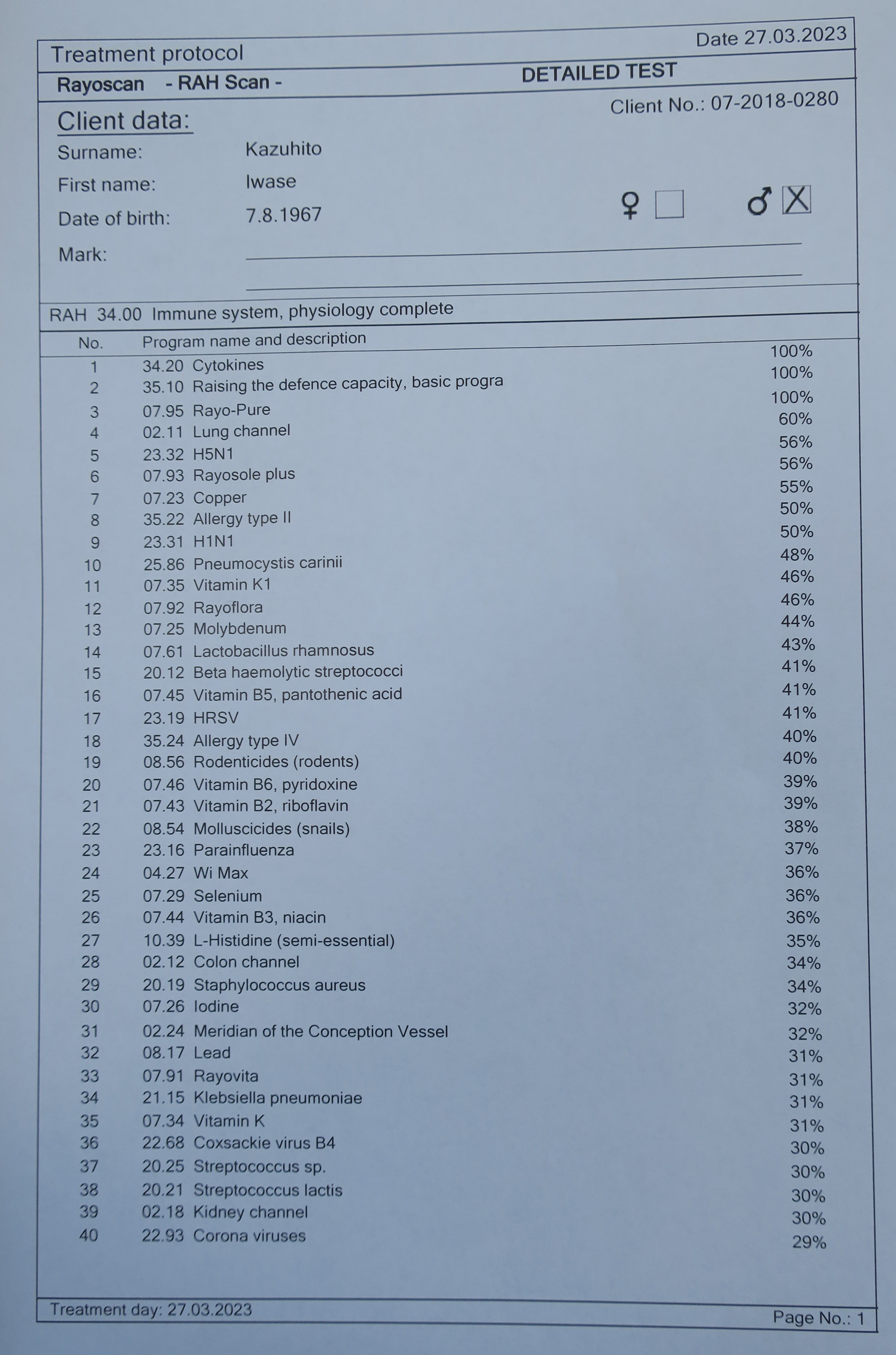 私の例では、免疫システムに負担があり、その原因は、優先順位の高い順で、有害物質の蓄積、酸とアルカリバランスの乱れ、ミネラル、ビタミンB群の不足で、そのために、サイトカインの負担、抵抗力の低下がみられ、病原体の影響を抑えられていない状態でした。