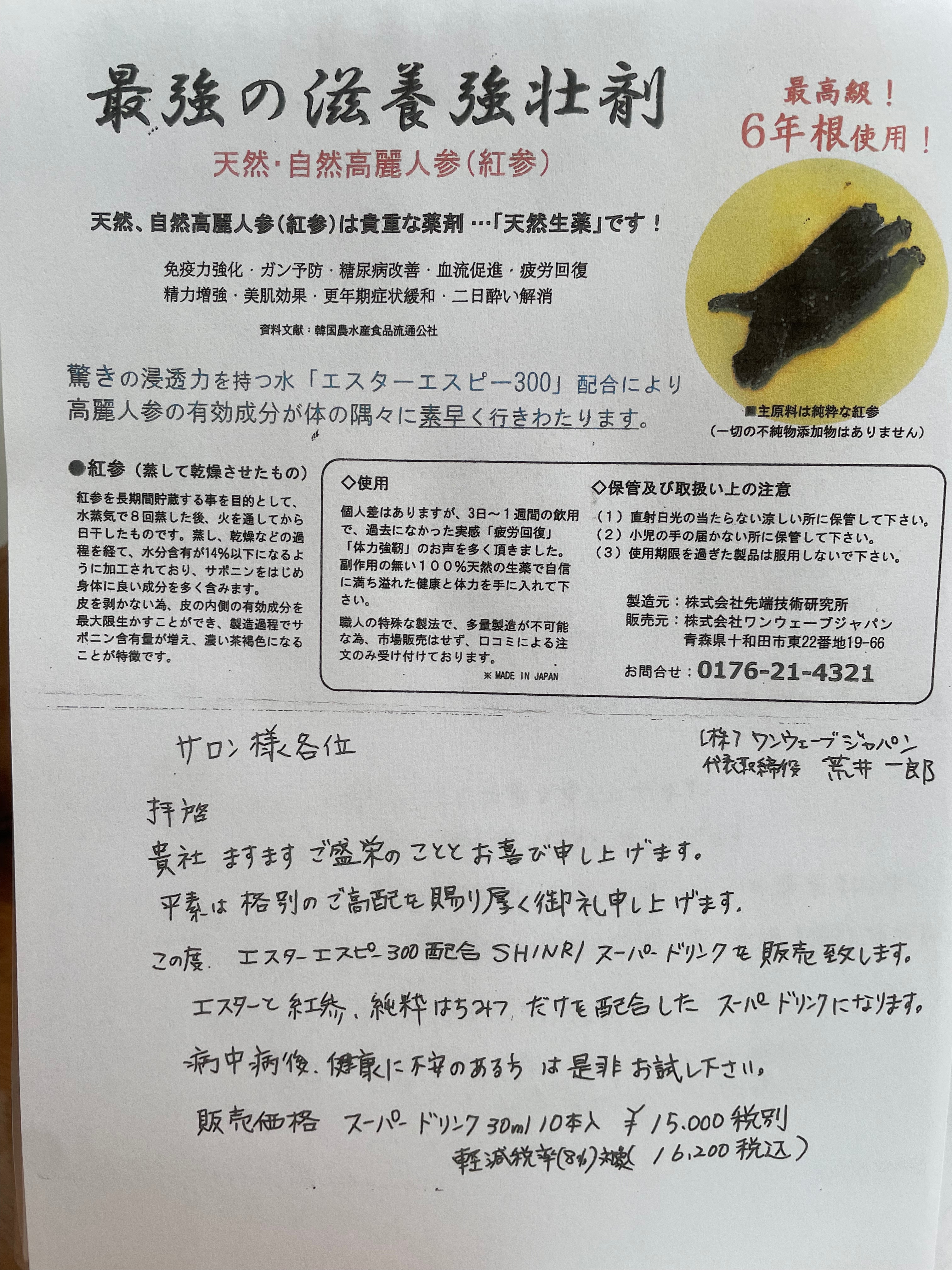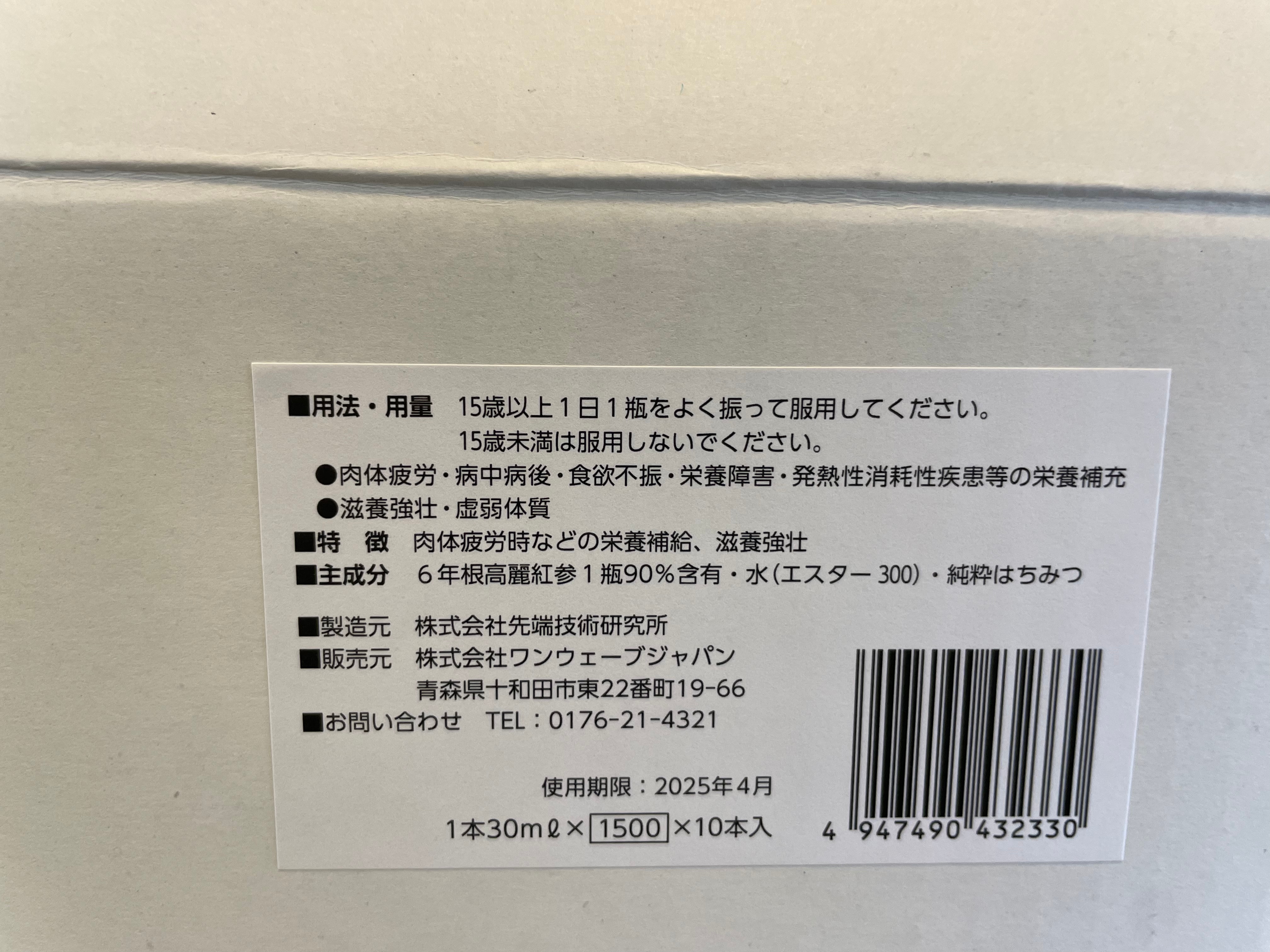 エスターSP300と6年高麗人参紅参・純正はちみつ配合のシンリスーパードリンク。