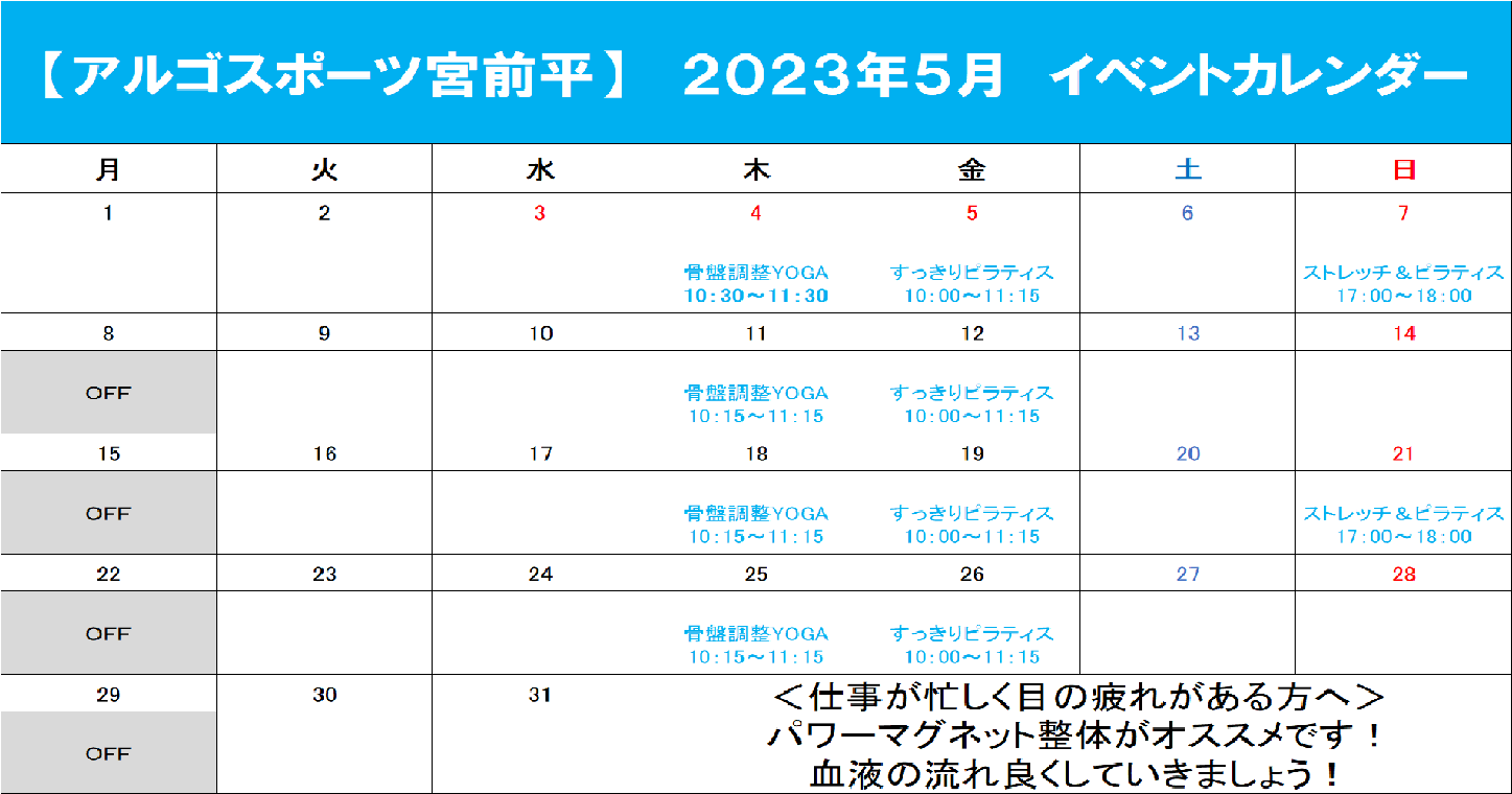5月の営業スケジュールをお知らせいたします。