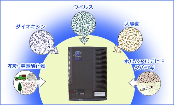 お部屋の空気を清浄化し、空気中の微細有害物質、および細菌類を殺菌・除菌する空気清浄機。