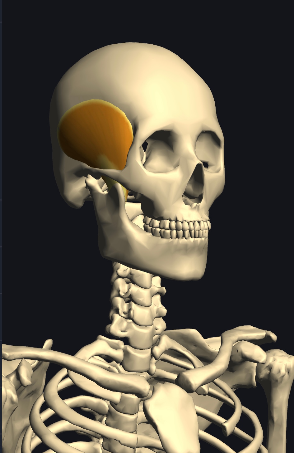 ここに、側頭筋という筋肉があるのですが その筋肉が「下顎」に繋がっていて 顎関節の動きに影響を与えます