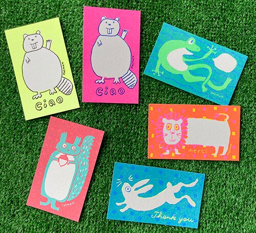 私はリソグラフ印刷のポストカード全22種類、持って行きます!