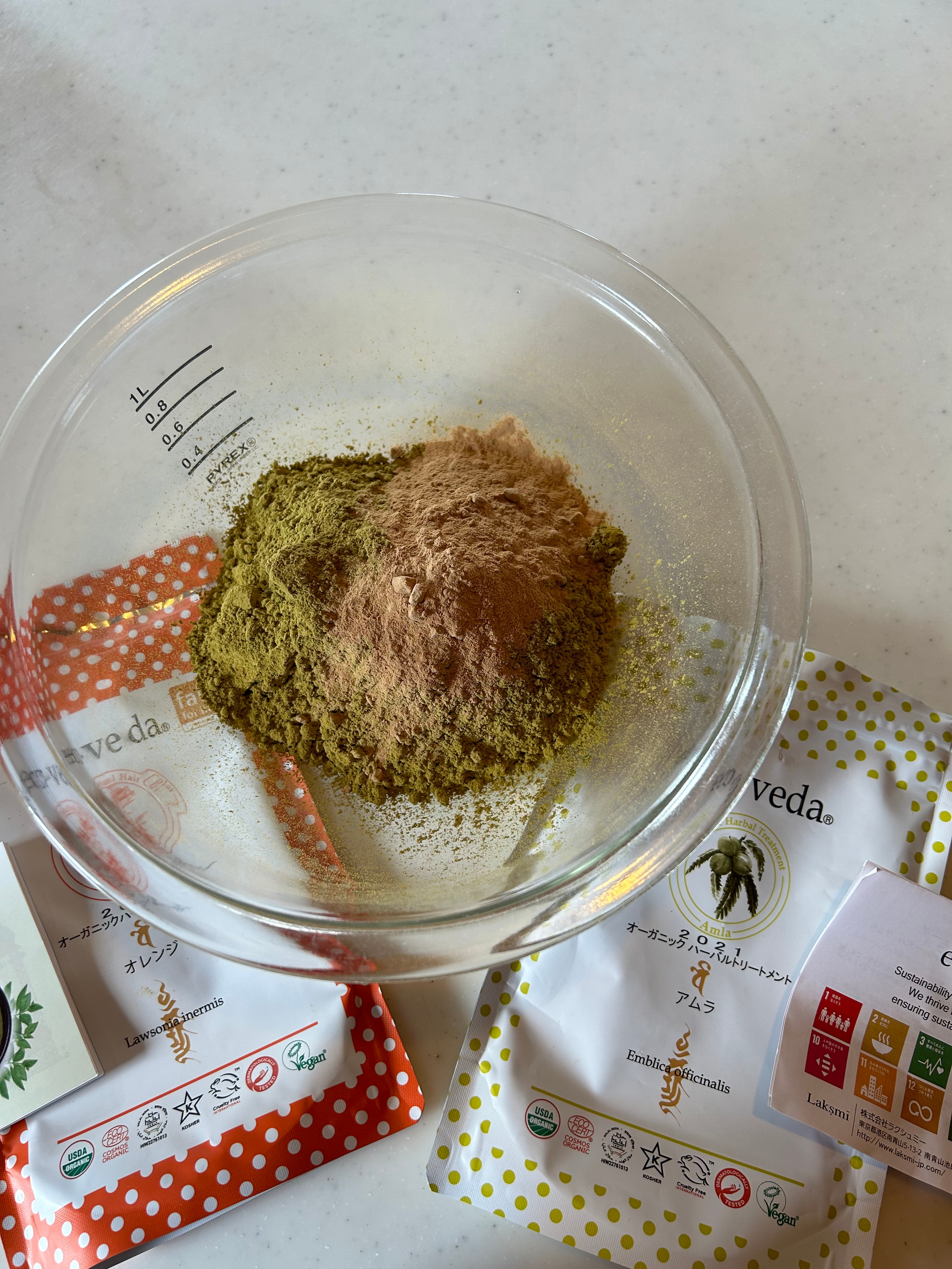 ヘナを練る時は金属に反応してしまいますので、なるべくガラスや陶器などで練ってくださいね。
