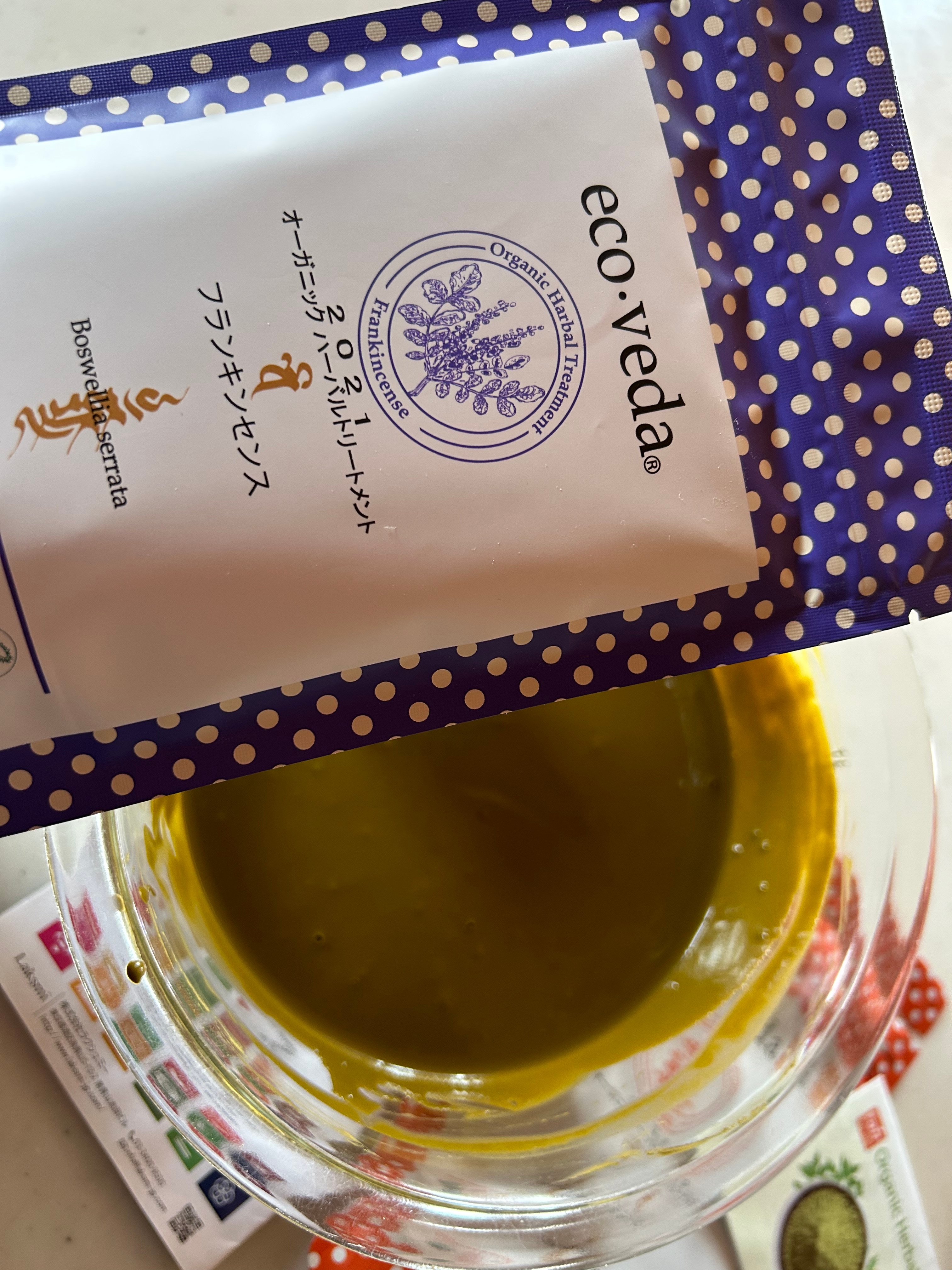 その上澄みのフランキンセンス水でヘナを練るのです!