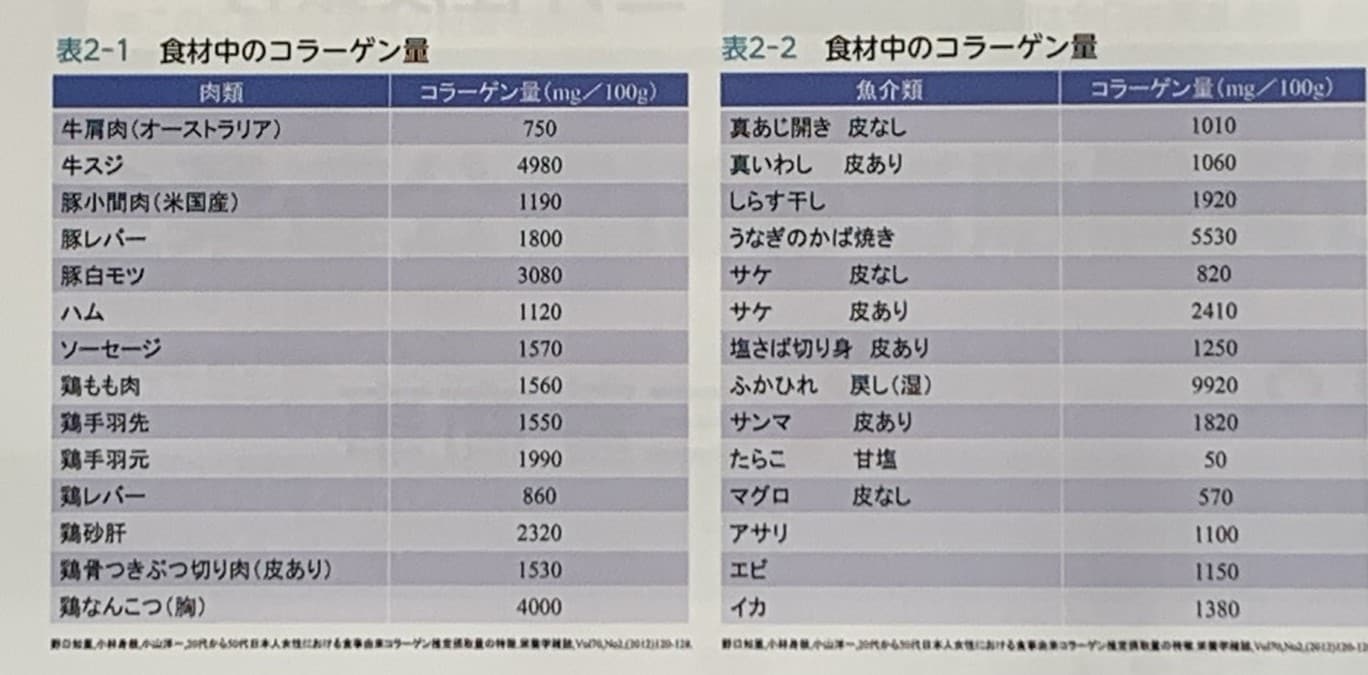 コラーゲン含量の多い食材(㎎/100g)