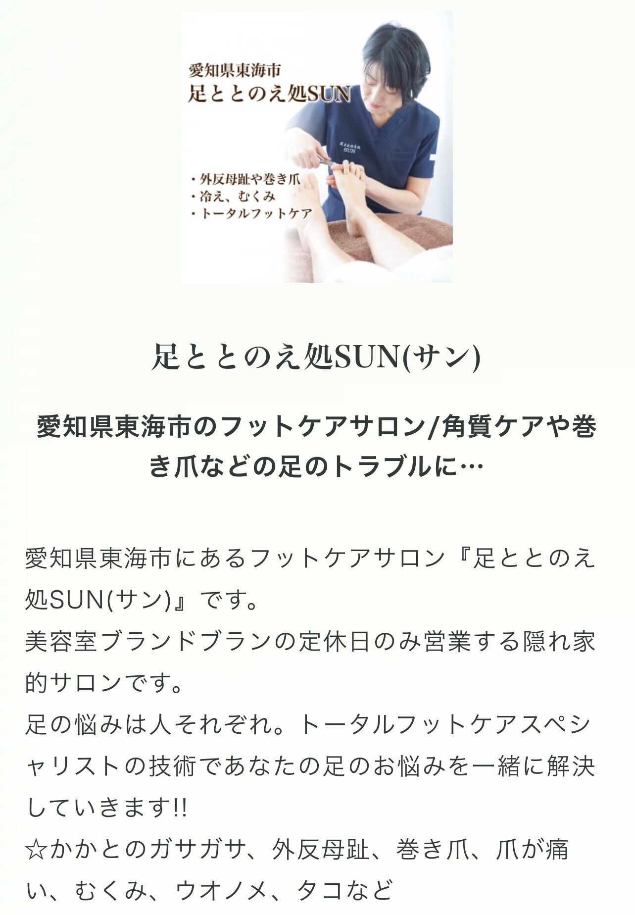 フットケアの先生はこの方です。https://tsuku2.jp/ashitotosun