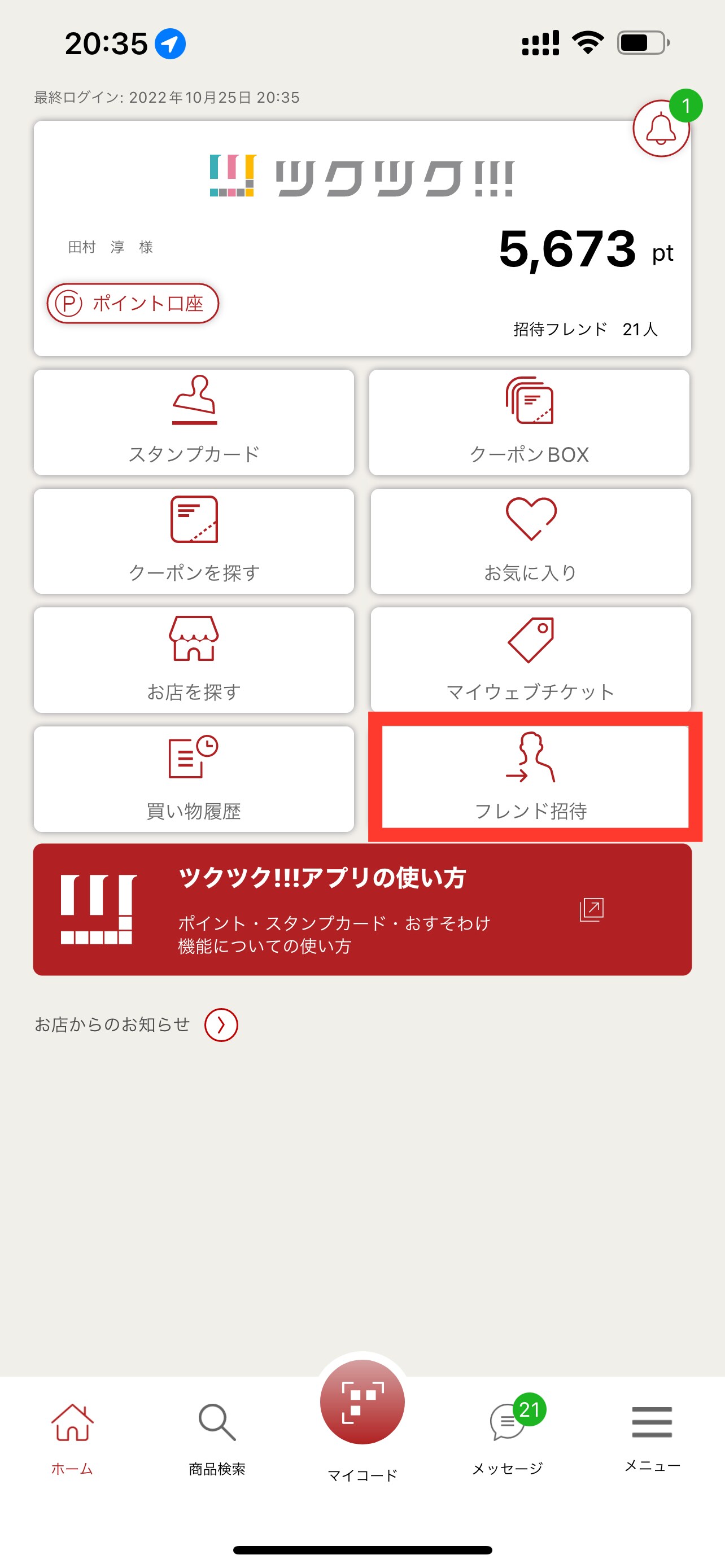 ツクツク‼︎!は1人フレンド招待するごとにお互いに100pt付与されます✨