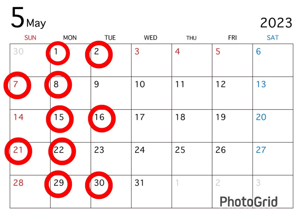 5月の定休日と『ファンクラブおすそわけ』登録をお忘れなく!