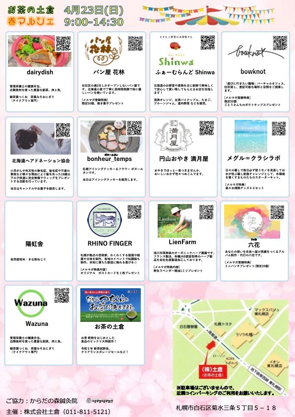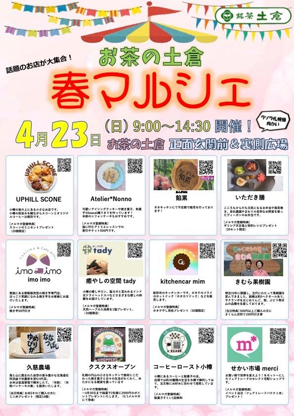 北海道のお茶屋といえば「お茶の土倉」と連想するくらい有名なお茶の土倉さんが4月23日(日)に「お茶の土倉 春マルシェ」を開催していました。有難いことに、コーヒーロースト小樽も出店させていただきました。