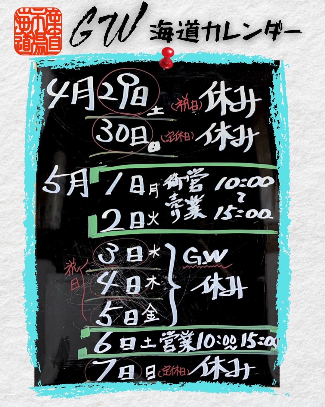 産直市場海道ゴールデンウィークのカレンダーです。