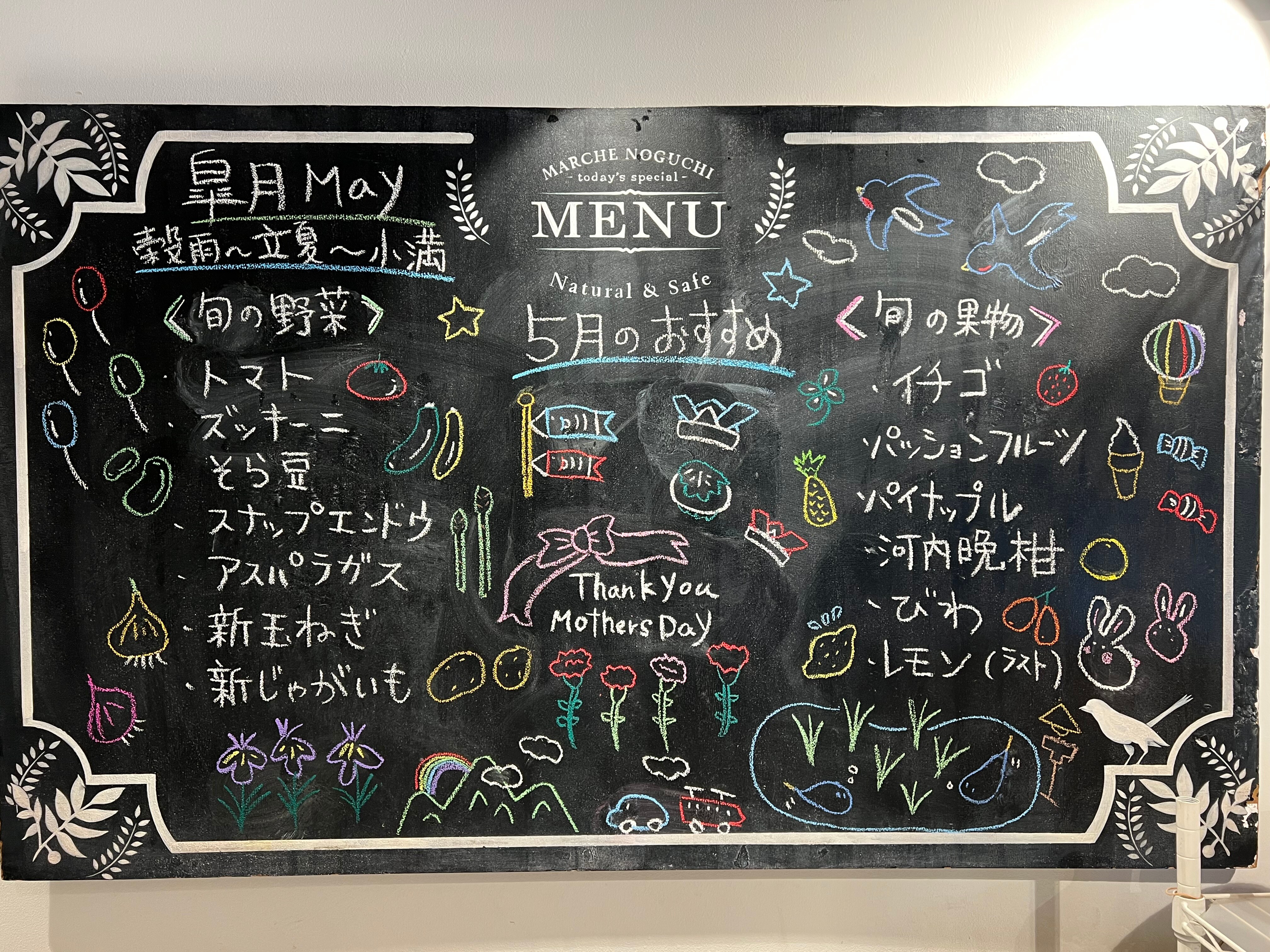 と最近毎月書き換えるようになった黒板を5月バージョンにしました。