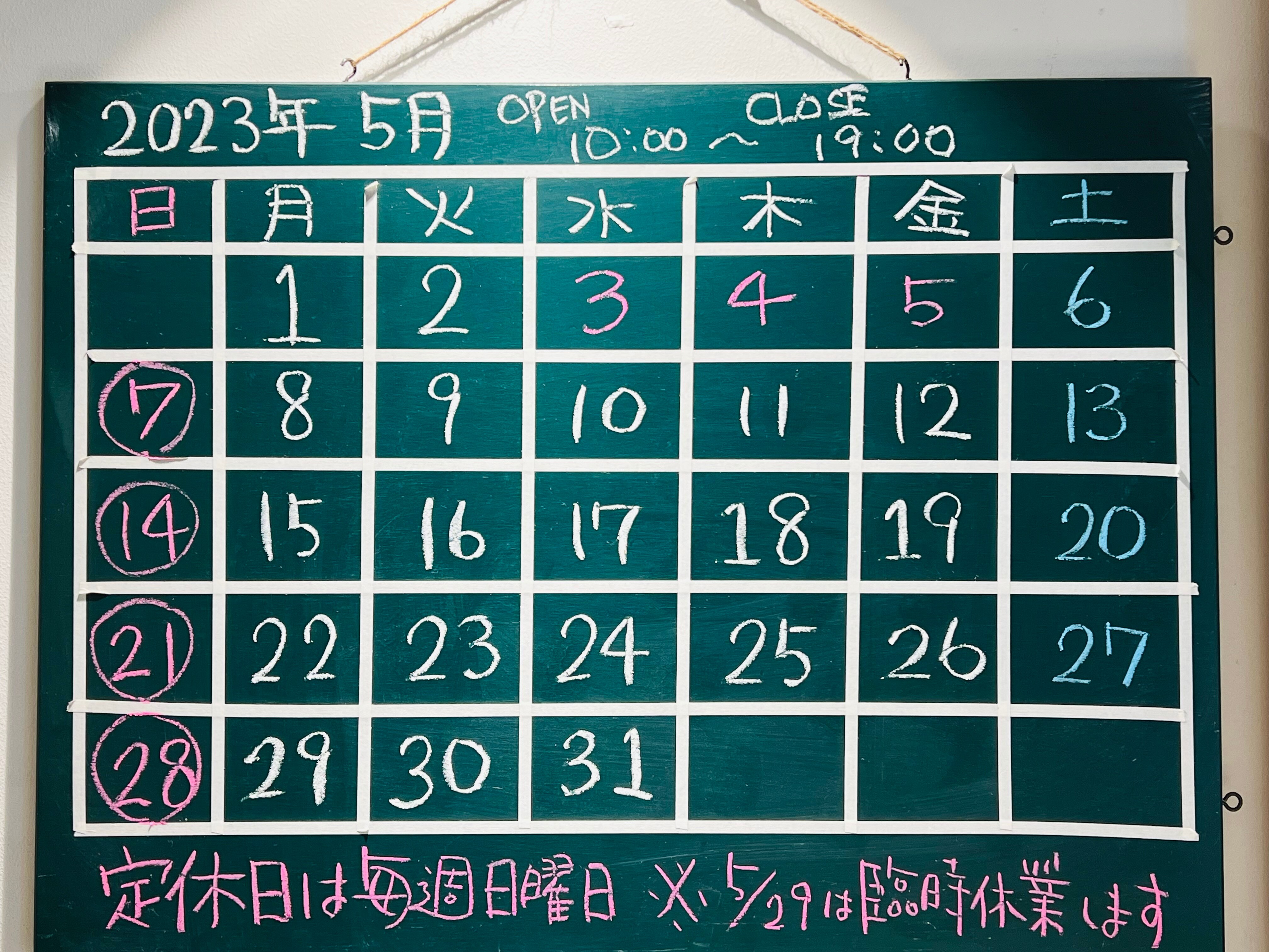 ゴールデンウィーク中ですが5月の営業日のお知らせをします。
