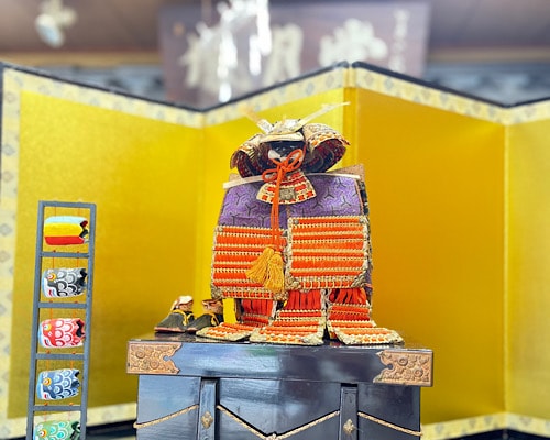 鳳月堂の店舗内では毎年兜を飾るのですが、