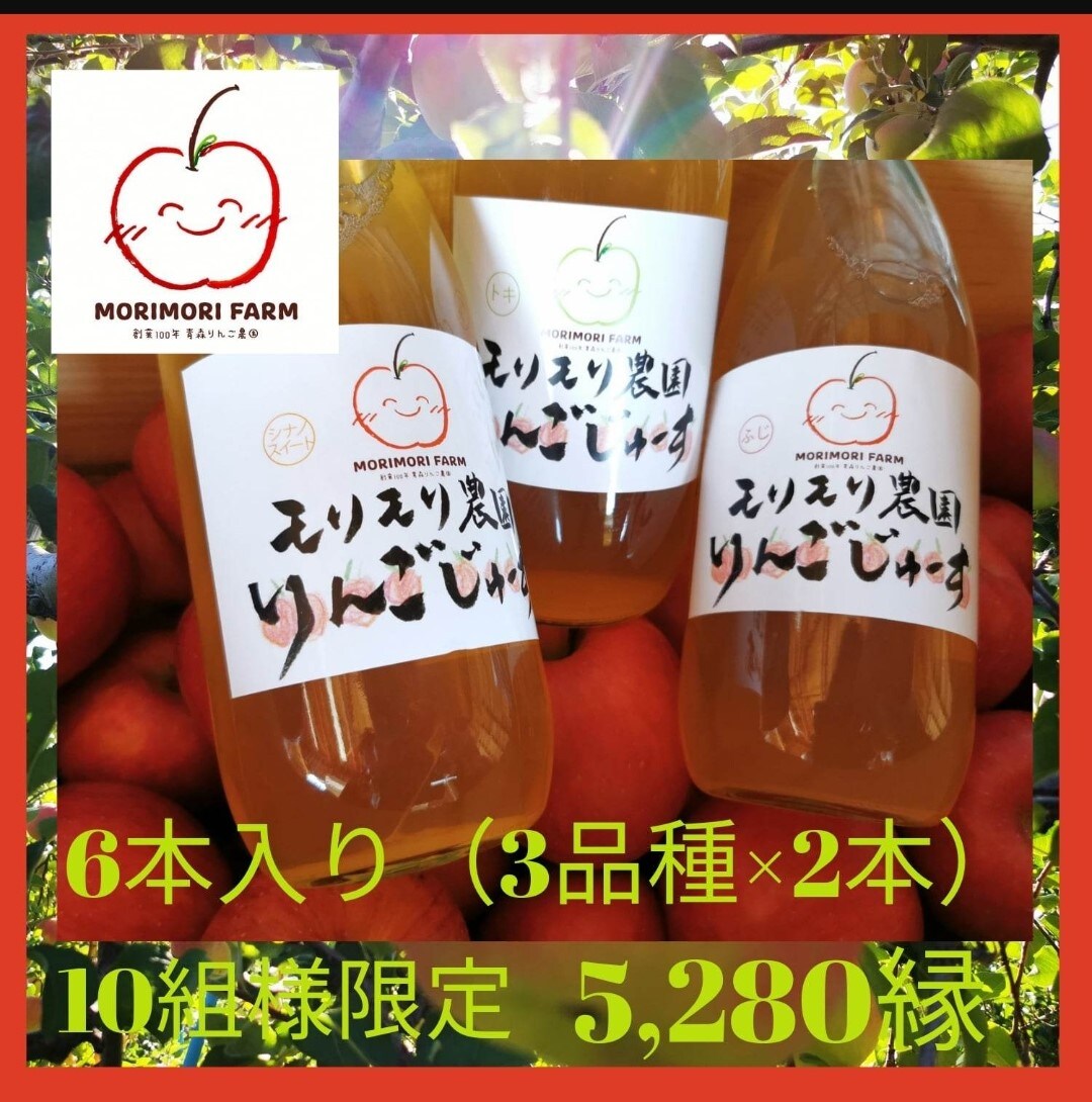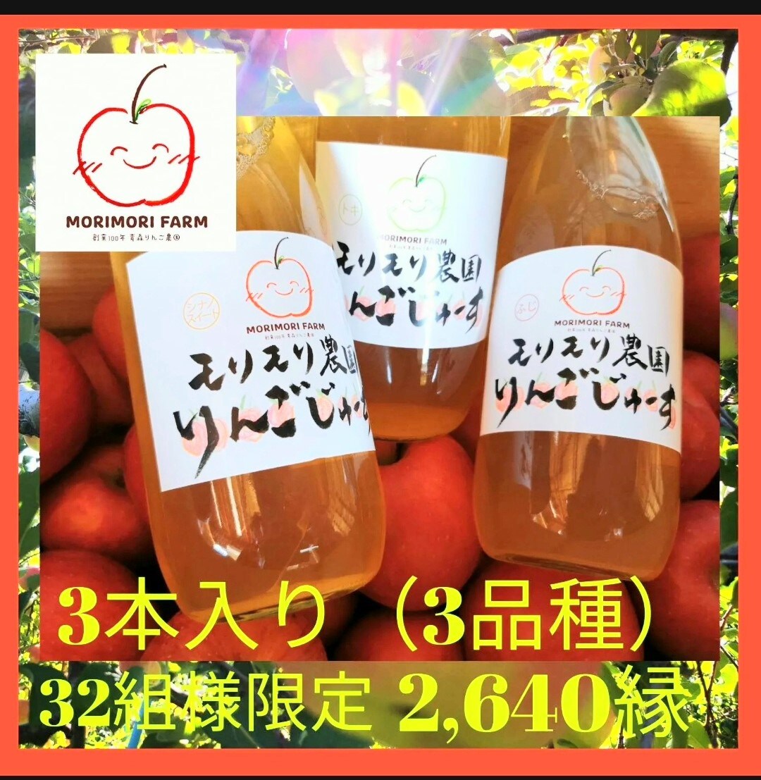 『MORIMORI FARMの無添加のストレート100%りんごジュース酸化防止剤不使用です。