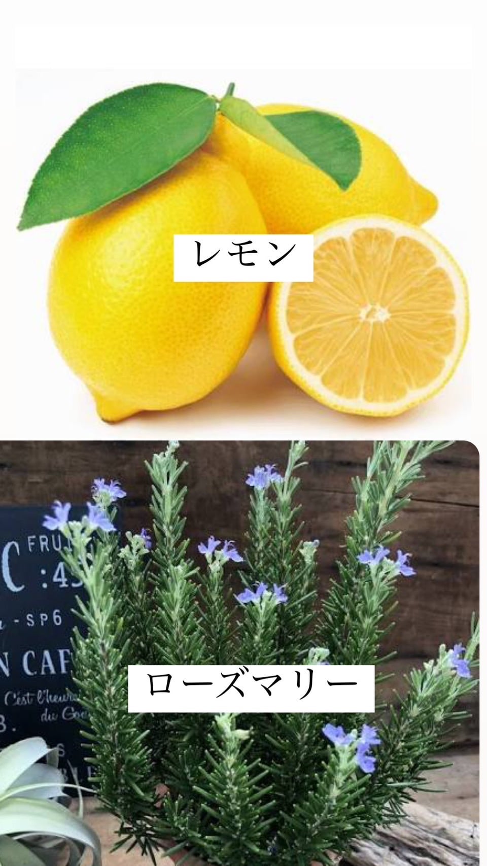 昼間は、元気になれるレモンやローズマリー、