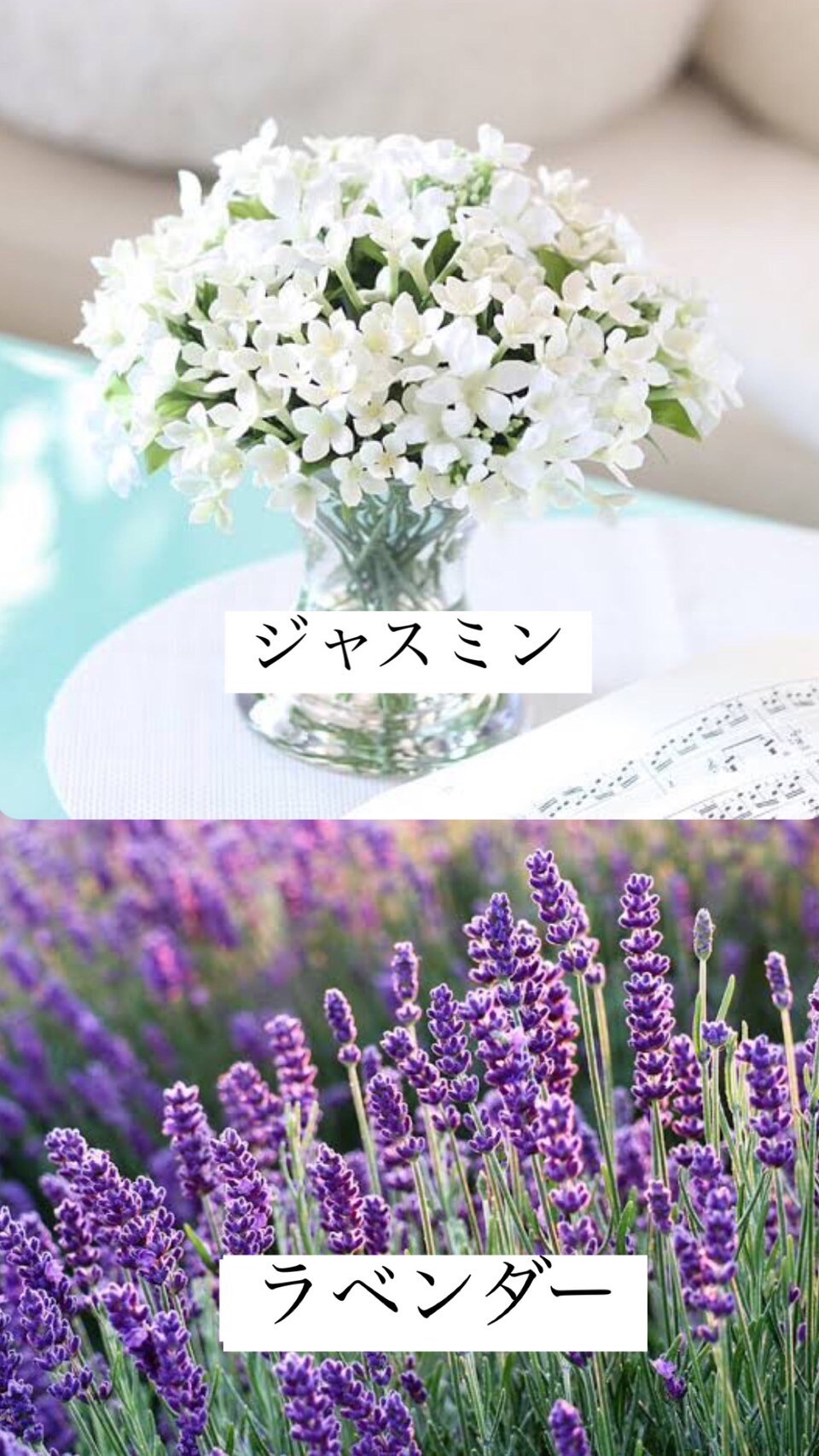 寝る前はジャスミンとラベンダーがオススメです。
