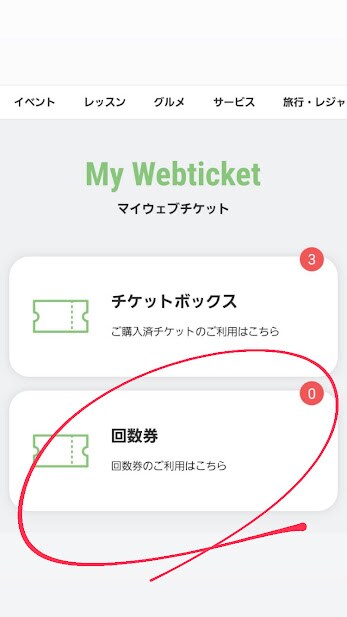そして、紙でのウェブチケットの場合は【チケットボックス】からのご利用でしたが、今回からは【回数券】となります