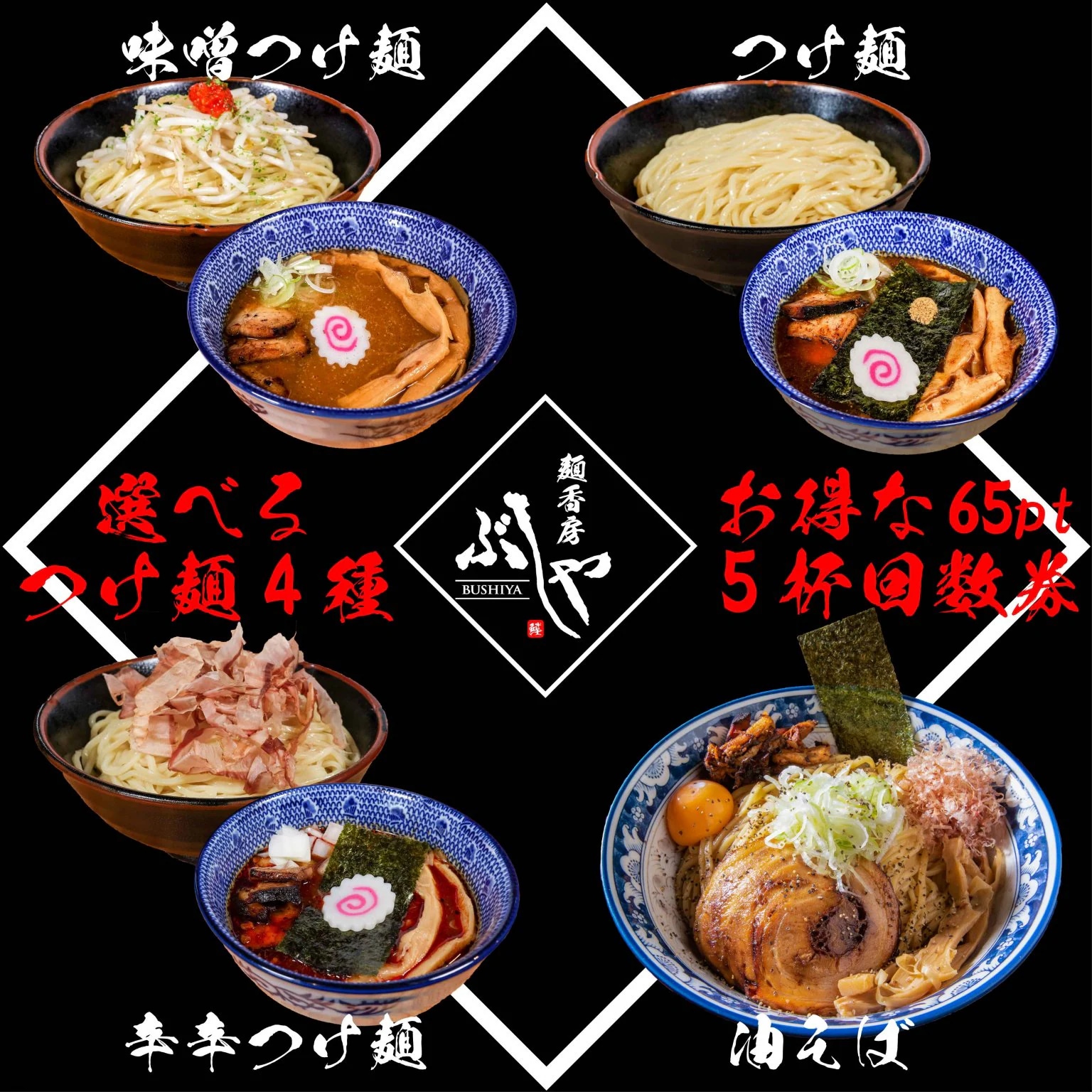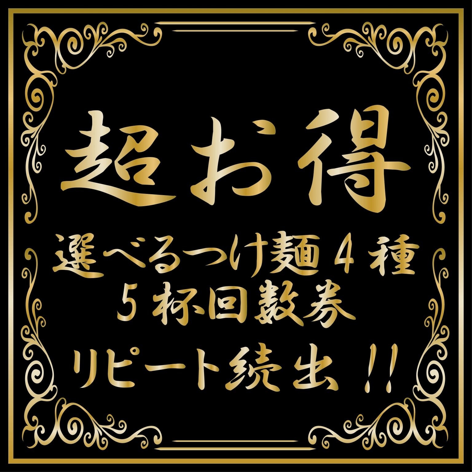 4種選べる!つけ麺・味噌つけ麵・辛辛つけ麵・油そば 5杯分回数券はこちら