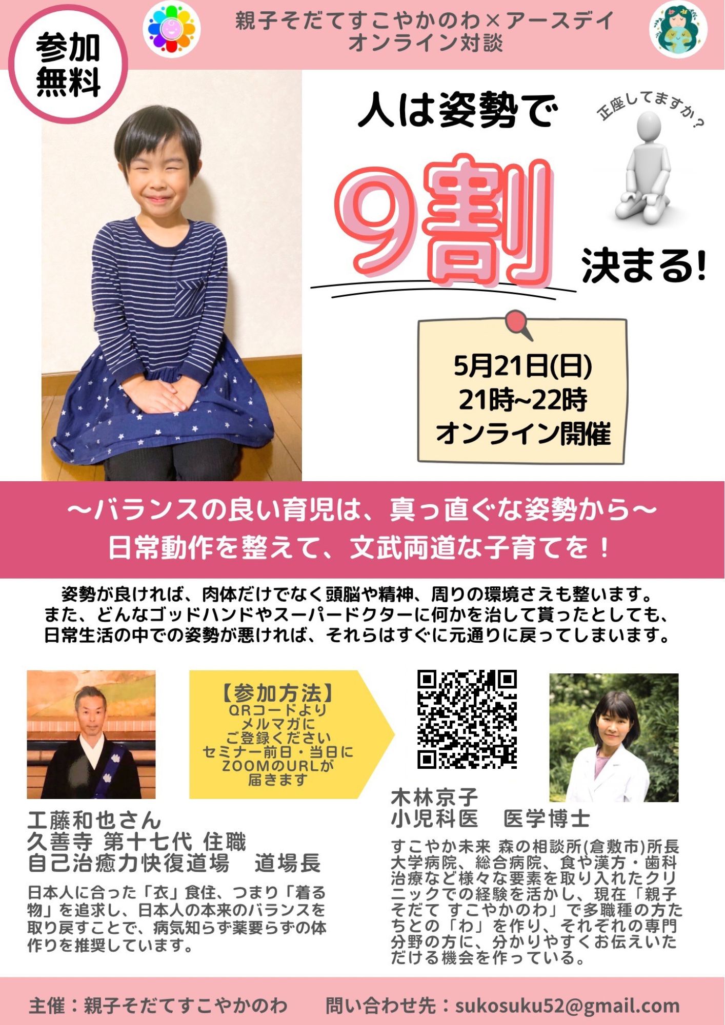 5月21日の21時〜22時は、久善寺 第十七代 住職でもあり、自己治癒力快復道場長の工藤和也さんと、小児科医の木林先生が対談させていただきます。