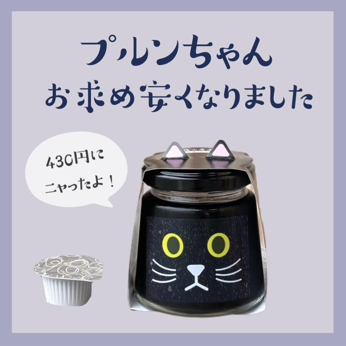 黒豆寒天ゼリーの「プルンちゃん」が材料費等見直しにつき、480円から430円にお値下げさせていただく事になりました!