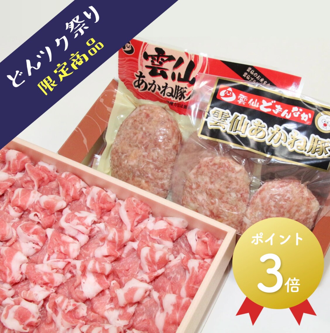 あかね豚ハンバーグ&しゃぶしゃぶセット【どんツク祭り!!!限定高ポイント】雲仙あかね豚【卵・牛乳不使用】長崎県雲仙のブランド豚|雲仙どまんなか