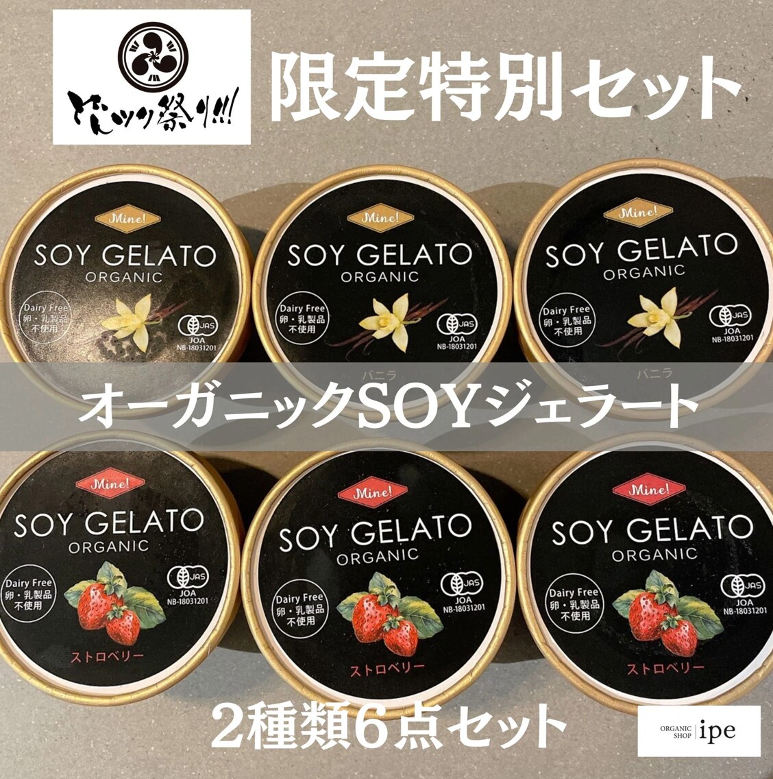 【配送専用】オーガニック豆乳ジェラートアイス詰め合わせ6個セット・乳製品不使用(バニラ3・いちご3)【どんツク!!!祭り特別セット&高ポイント商品】