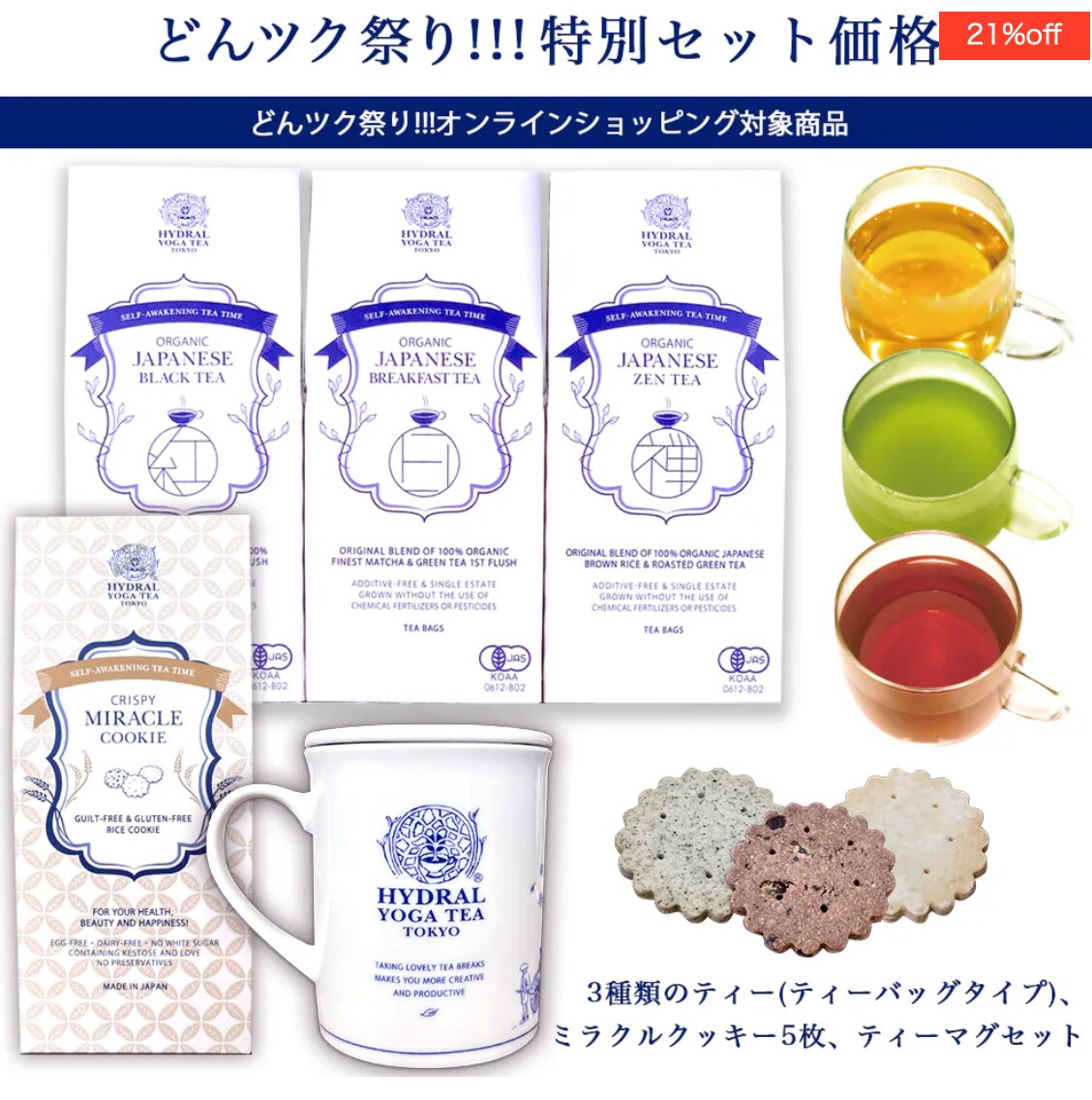 【どんツク祭り!!!特別価格 20%OFF】国産オーガニックティー(ティーバッグ)選べる3種・ミラクルクッキー5枚入り小箱・ティーマグカップセット|大切な人への贈り物にも。HYDRAL YOGA TEA