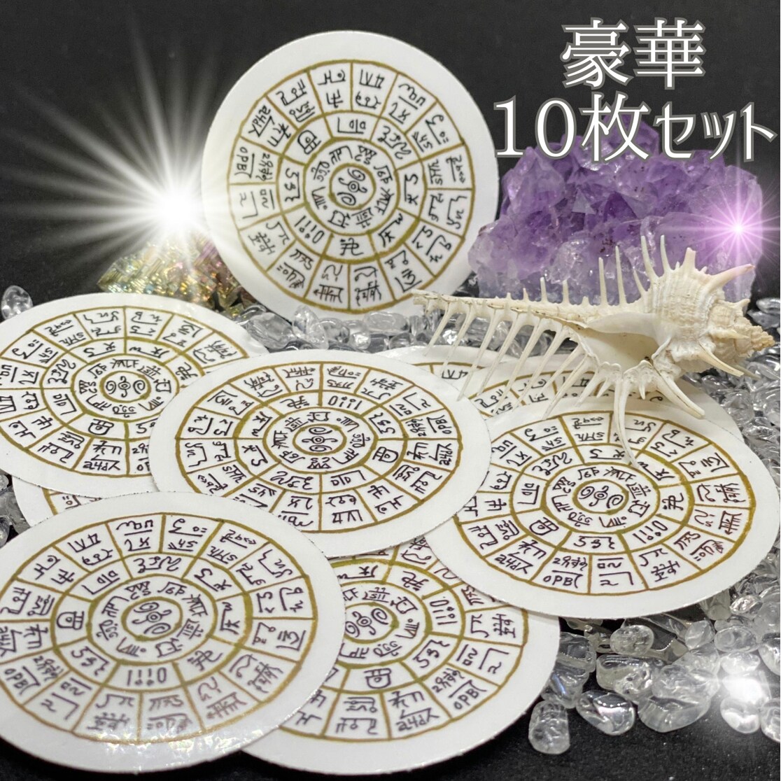 貼って願いを叶える!龍体文字フトマニ図ステッカー 10枚セット(白)