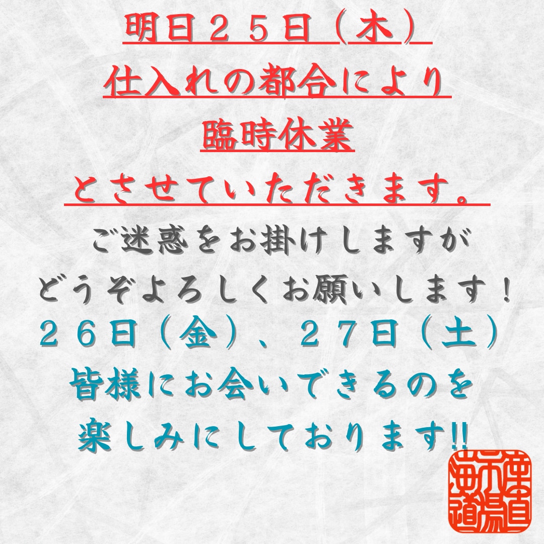 25日(木)の臨時休業のお知らせ