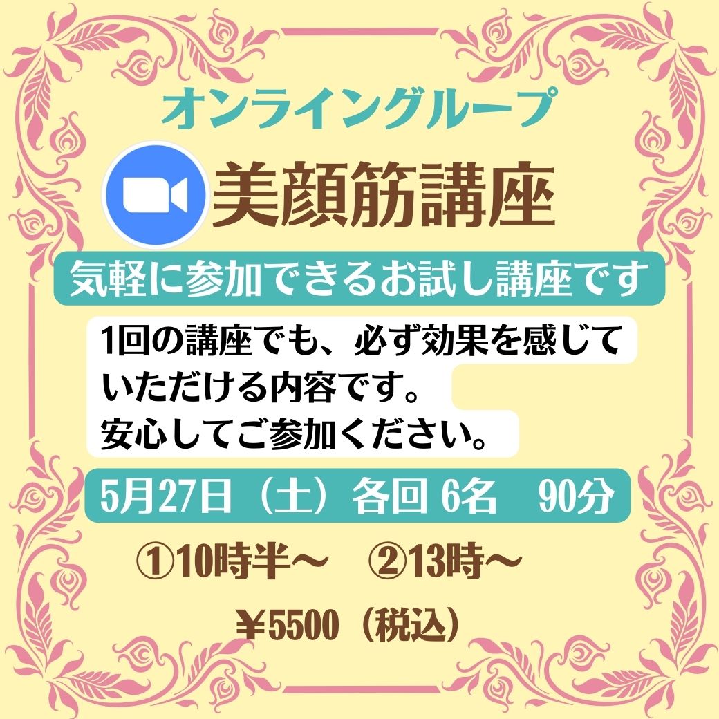 明日、5月27日(土)は、美顔筋講座を開催します。