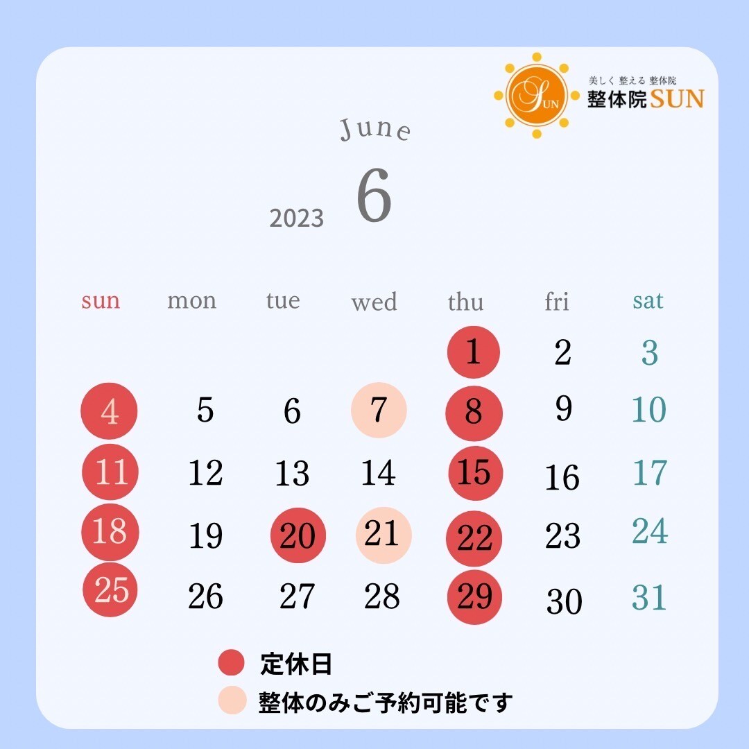 6月の営業日のお知らせと今週の空き状況