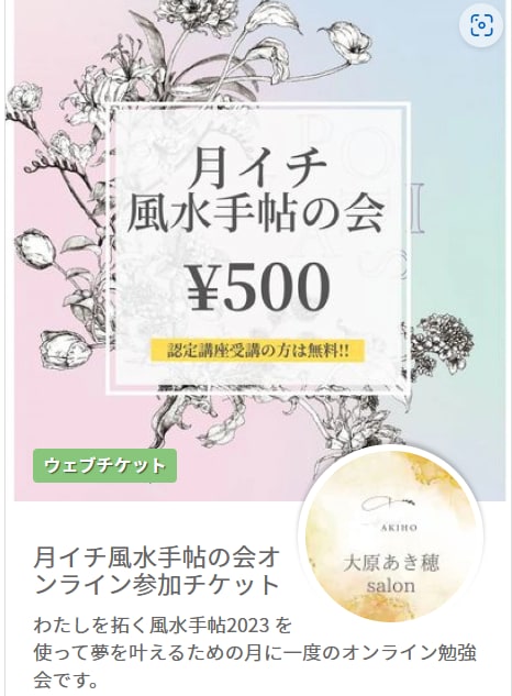 *風水手帖講座を受けた方は「無料」のご案内をします