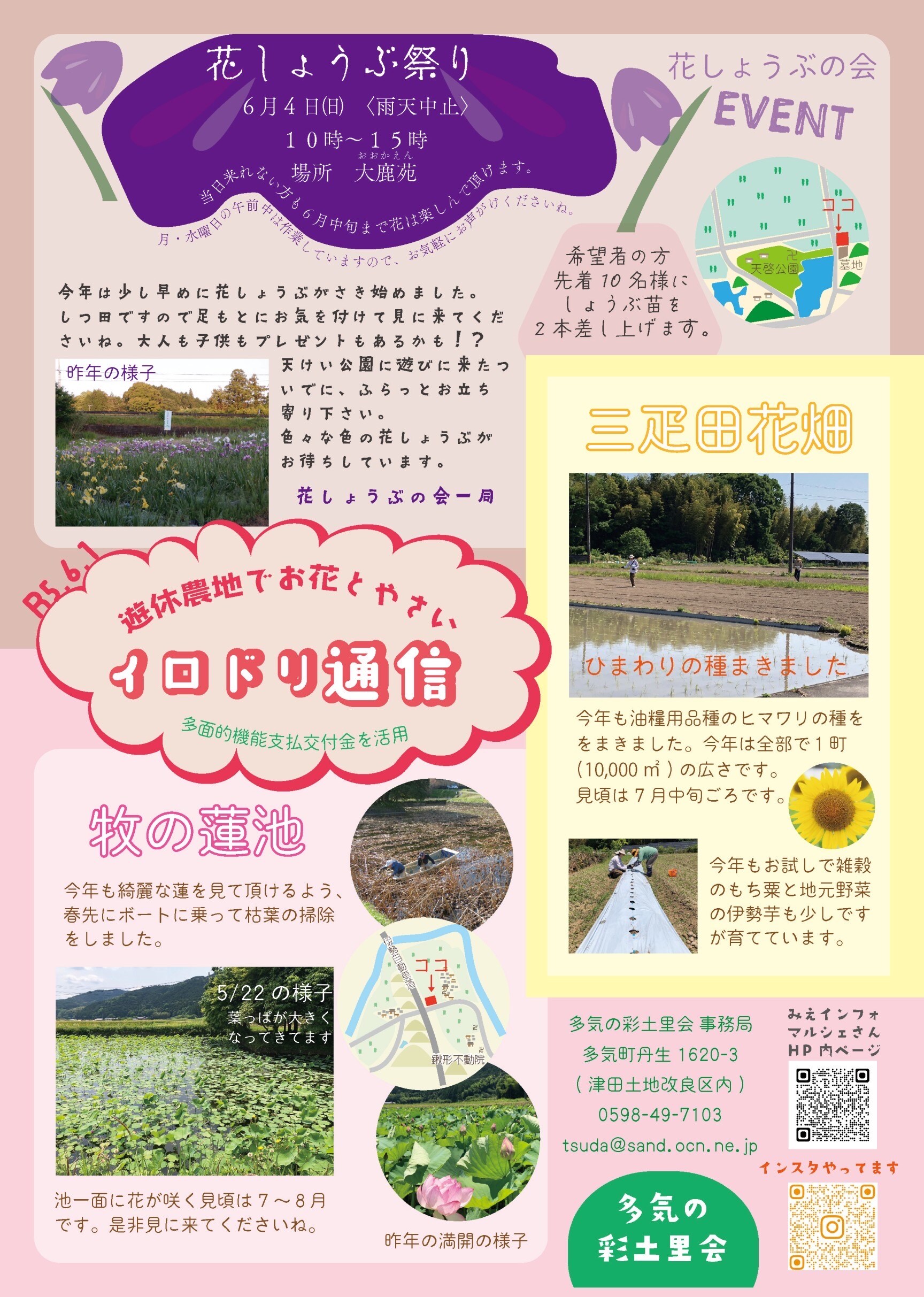 今年は少し早めに花しょうぶが咲き始めました。湿田(しつた)ですので足元にお気をつけて見にきてくださいね。大人も子供もプレゼントがあるかも!?
