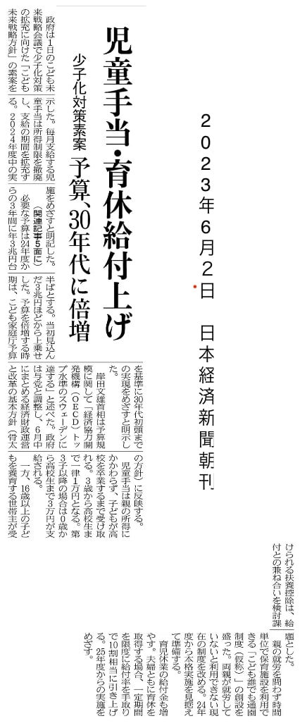 まずは2024年度から児童手当は所得制限を撤廃し、3歳から高校卒業(現状 中学卒業まで)まで一律1万円を支給、3人目以降は0歳から高校卒業まで3万円(現状 1.5万円)が支給されます。また、2025年度から育児休業給付金も増額され、夫婦共に育休を取得する場合、一定期間を限度に給付率を手取りで10割相当(現状 最高8割)に引き上げられる。