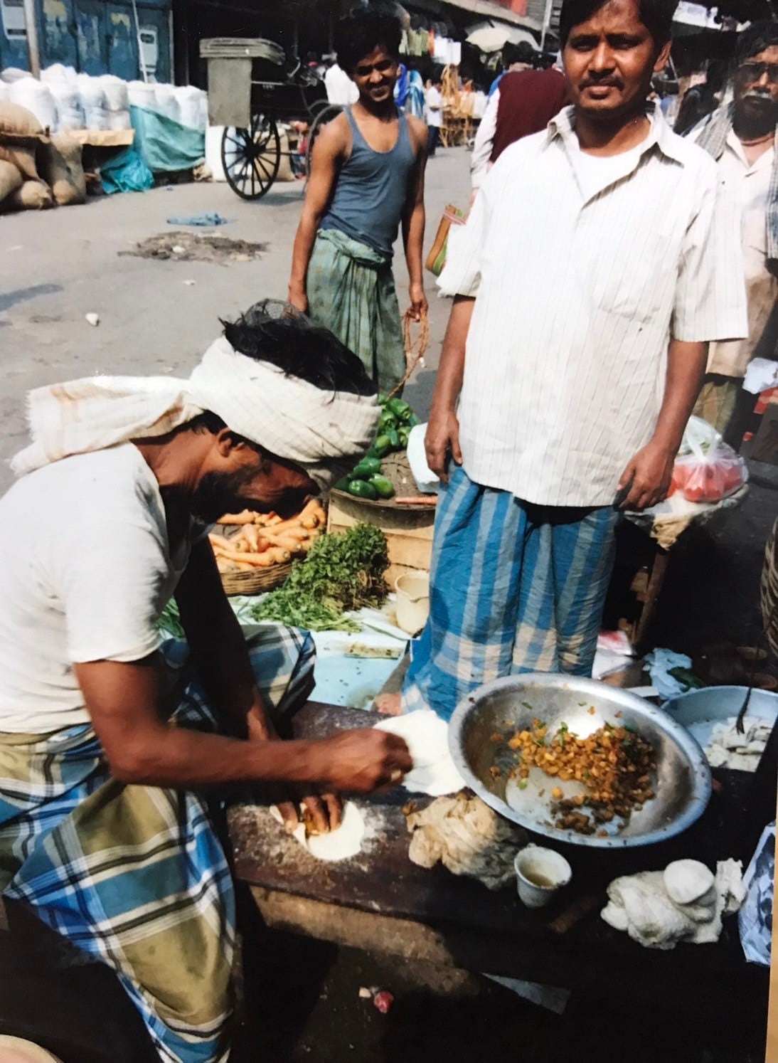 つづけて親父が言う:『それより、座ってないで立って飲んでくれ。今から、サモサを作るから』