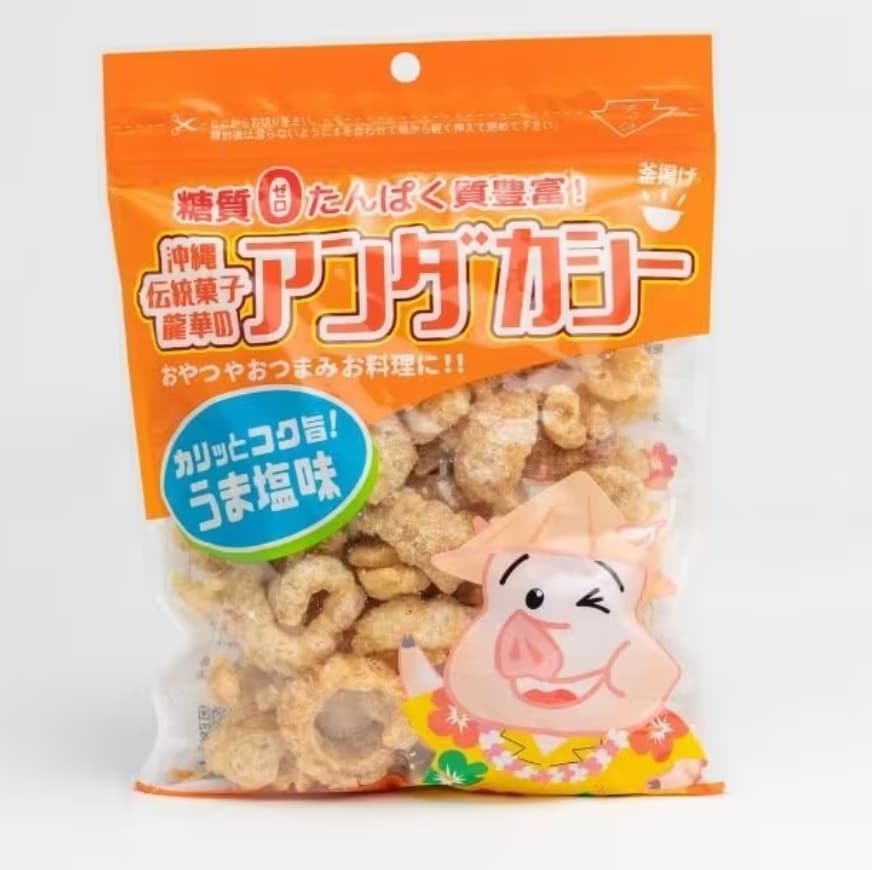 豚の皮を揚げた沖縄の名物菓子。沖縄県産豚皮と背脂を100%使用。
