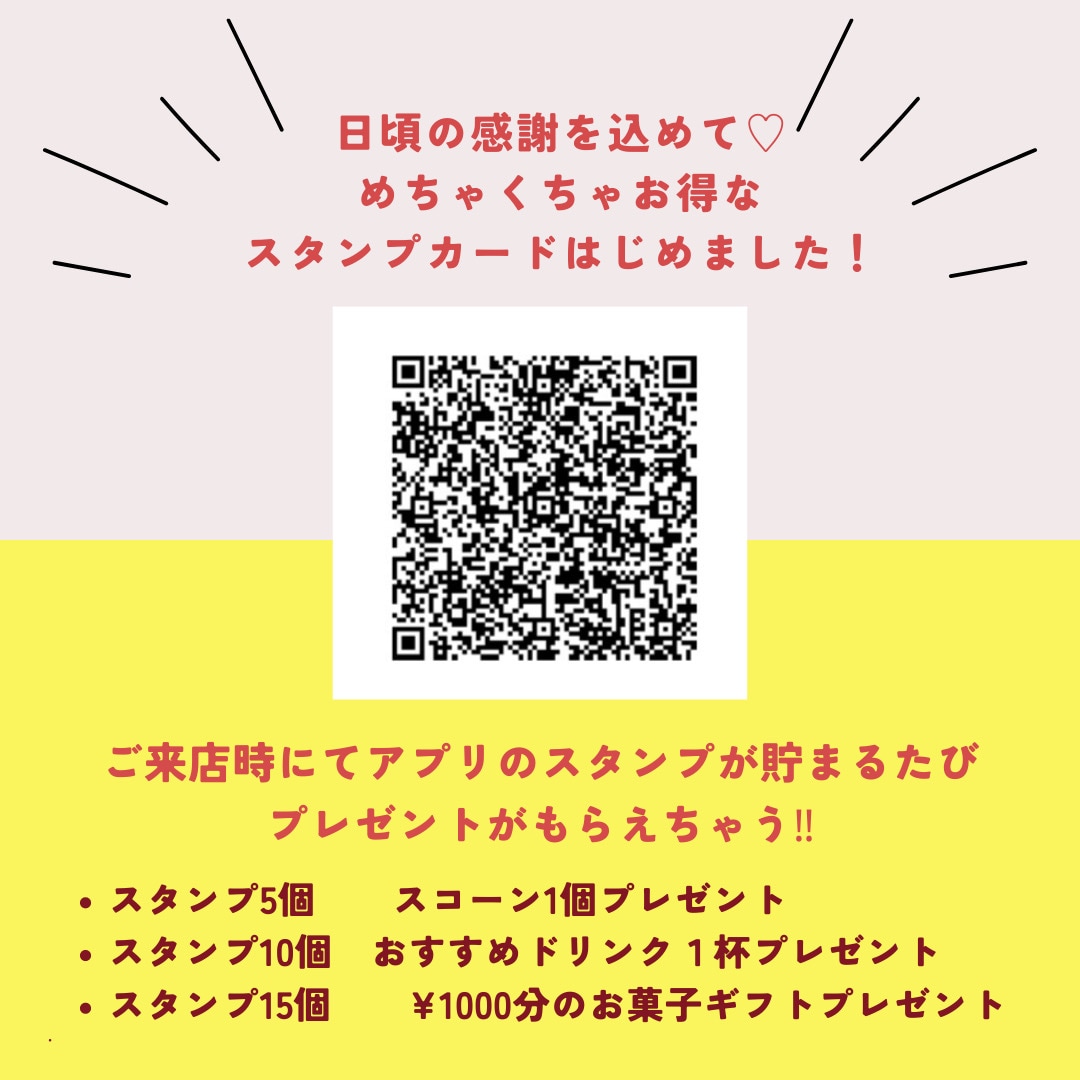 ぜひスタンプを貯めてプレゼントでいろんなおやつをお試しください☺︎