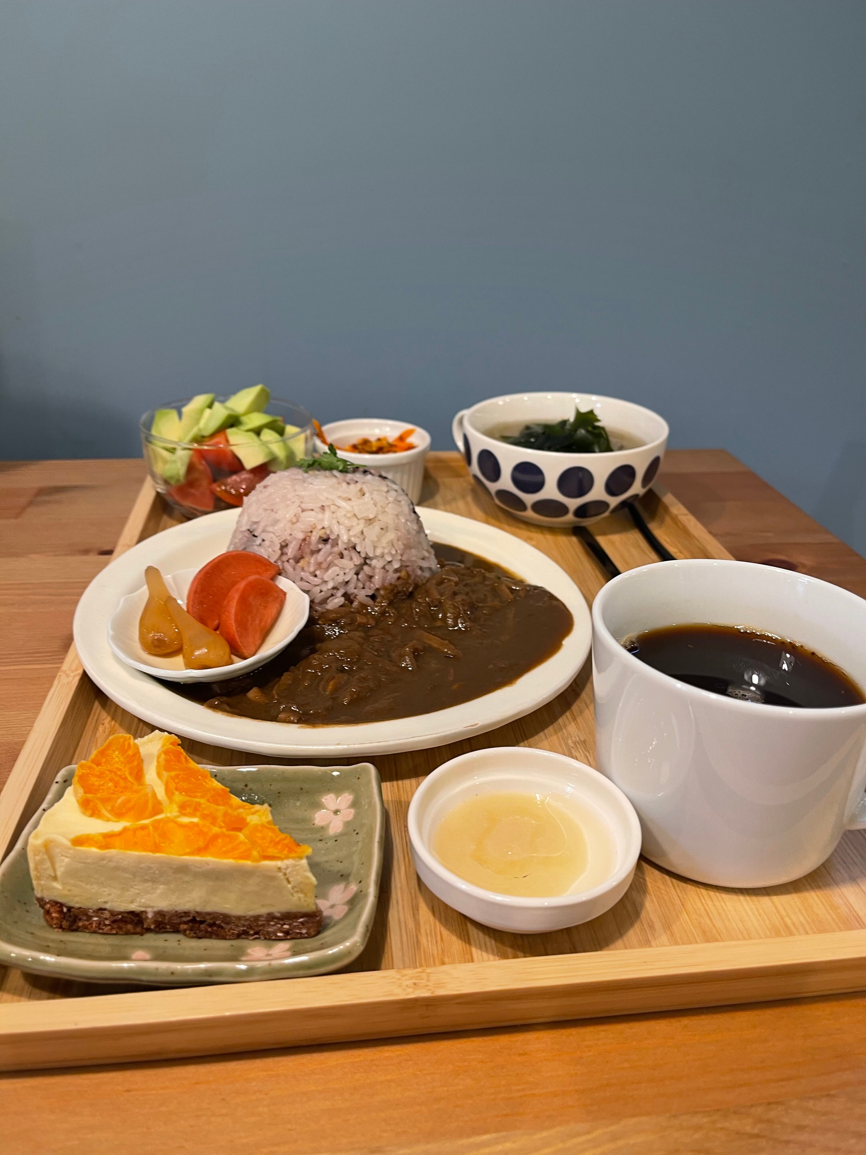 1️⃣スープ、サラダ、スパイスカレー、ロースイーツ、ドリンク一杯
