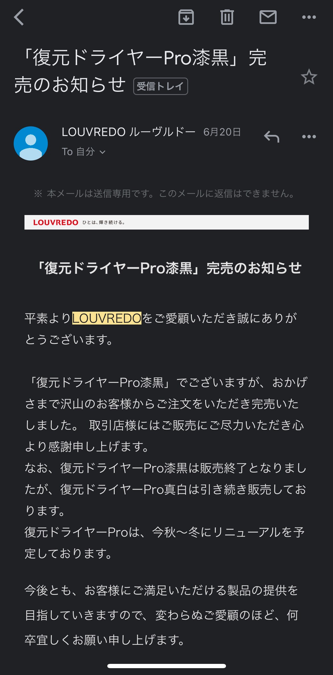 それと、メーカーから昨日連絡がありました。