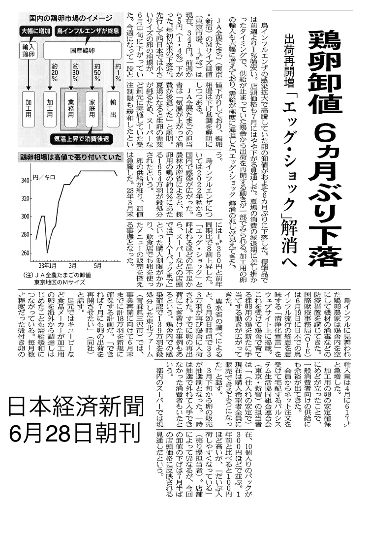 今日は卵が6ヶ月ぶりに値下げになるというお話。
